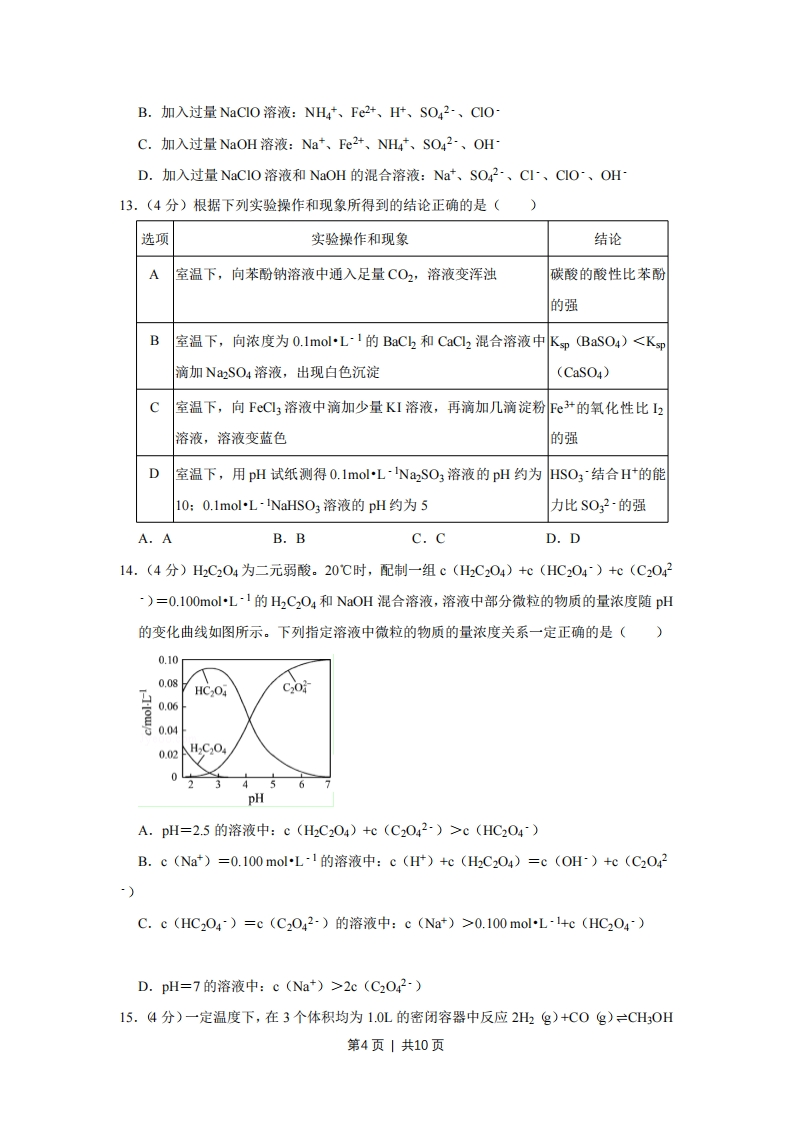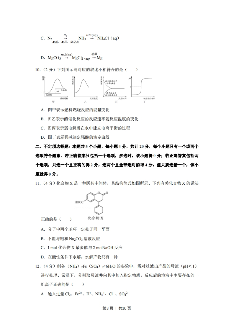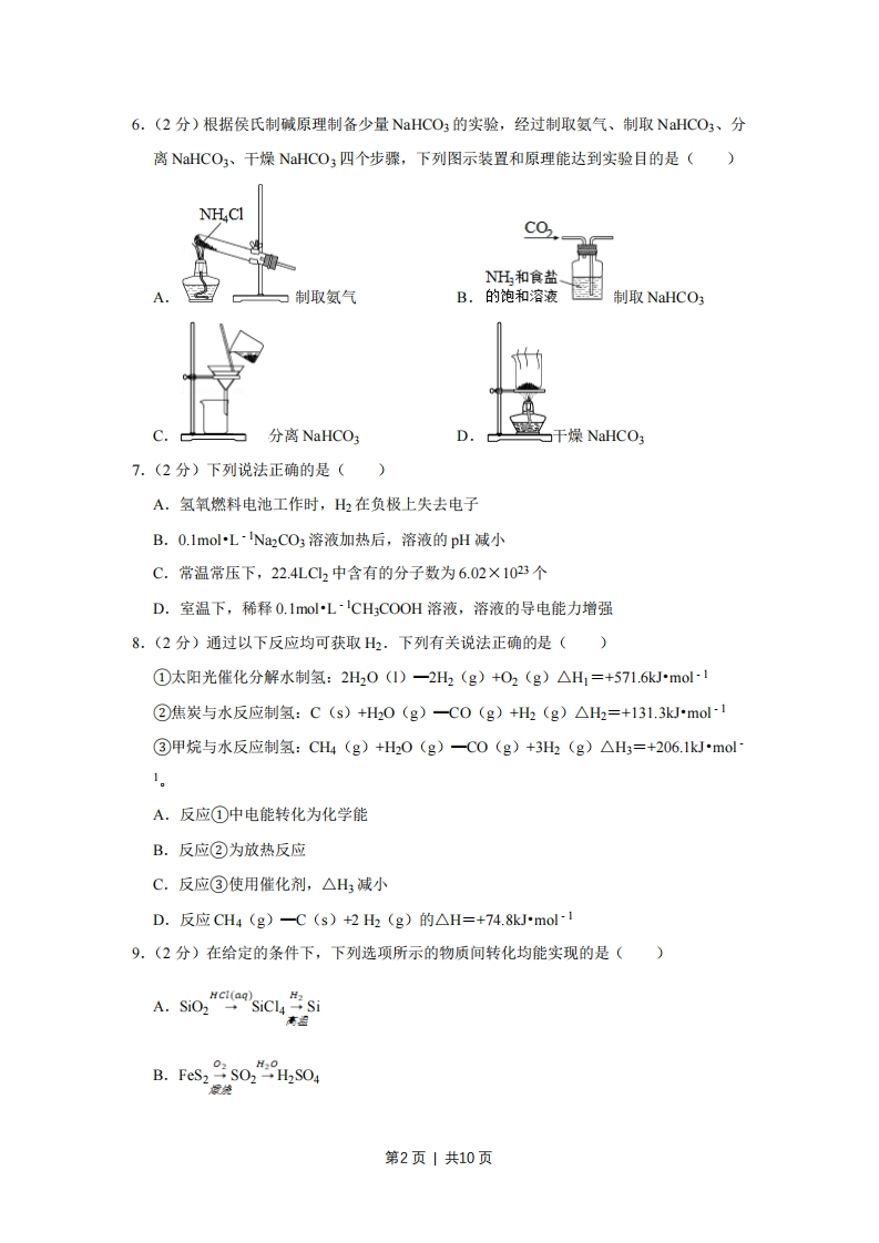 2016年江苏省高考化学试卷一、单项选择题(共10小题,每小题2分,满分20分,每小题只有一个选项符合题意)1.(2分)大气中C02含量的增加会加剧“温室效应”。下列活动会导致大气中C02含量增加的是()A.燃烧煤炭供热B.利用风力发电C.增加植被面积D.节约用电用水2.(2分)下列有关化学用语表示正确的是()A.中子数为10的氧原子:°0B.Mg2+的结构示意图:C.硫化钠的电子式:Na::NaD.甲酸甲酯的结构简式:C2H4O23.(2分)下列有关物质的性质与用途具有对应关系的是()A.SO2具有氧化性,可用于漂白纸浆B.NH4HCO3受热易分解,可用作氮肥C.Fe2(SO4)3易溶于水,可用作净水剂D.Al2O3熔点高,可用作耐高温材料4.(2分)短周期主族元素X、Y、Z、W原子序数依次增大,X原子的最外层有6个电子,Y是迄今发现的非金属性最强的元素,在周期表中Z位于A族,W与X属于同一主族。下列说法正确的是()A.元素X、W的简单阴离子具有相同的电子层结构B.由Y、Z两种元素组成的化合物是离子化合物C.W的简单气态氢化物的热稳定性比Y的强D.原子半径:r(X)