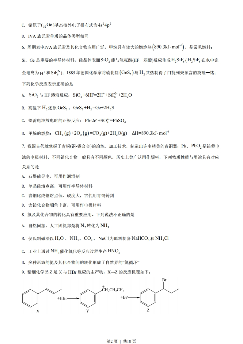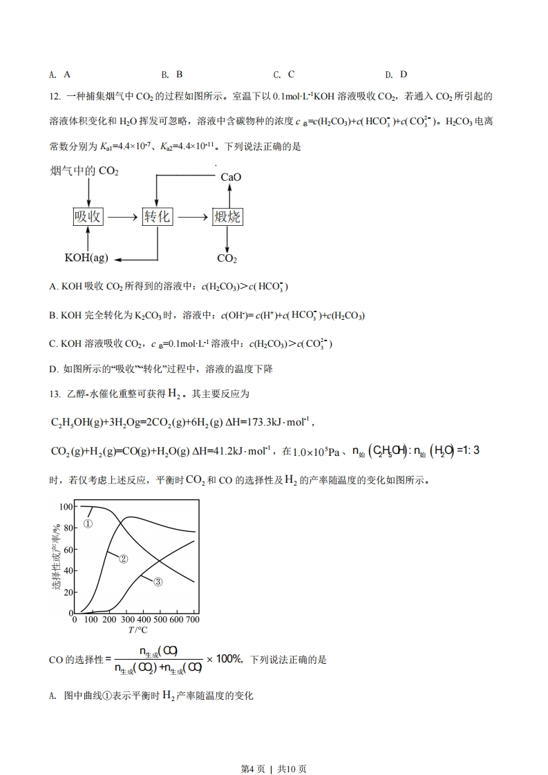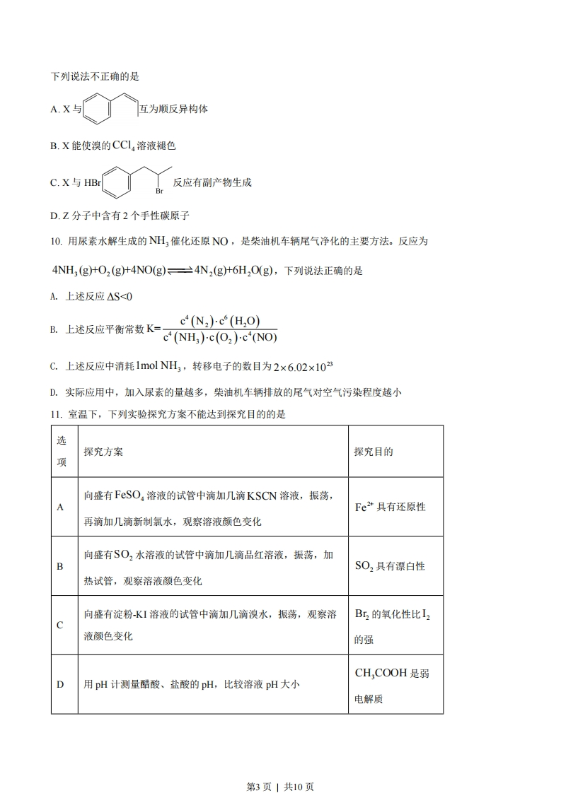 江苏省2022年普通高中学业水平选择性考试化学可能用到的相对原子质量:H1C12N14016S32C35.5Cr52Fe 56Cu64Ce140一、单项选择题:共13题,每题3分,共39分。每题只有一个选项最符合题意。1.我国为人类科技发展作出巨大贡献。下列成果研究的物质属于蛋白质的是A.陶瓷烧制B.黑火药C.造纸术D.合成结晶牛胰岛素2.少量Na,O2与H2O反应生成H,O2和NaOH。下列说法正确的是A.Na,O2的电子式为Na[:O]2-NaB.H,O的空间构型为直线形C.HO,中0元素的化合价为-1D.NaOH仅含离子键3.工业上电解熔融Al,O3和冰晶石(N,AlF。)的混合物可制得铝。下列说法正确的是A.半径大小:r(AIt)r(Na)B.电负性大小:F下O)C.电离能大小:I,(OL,(Na)D.碱性强弱:NaOH