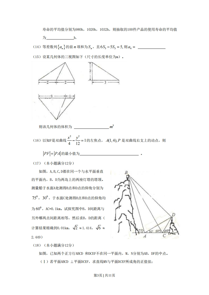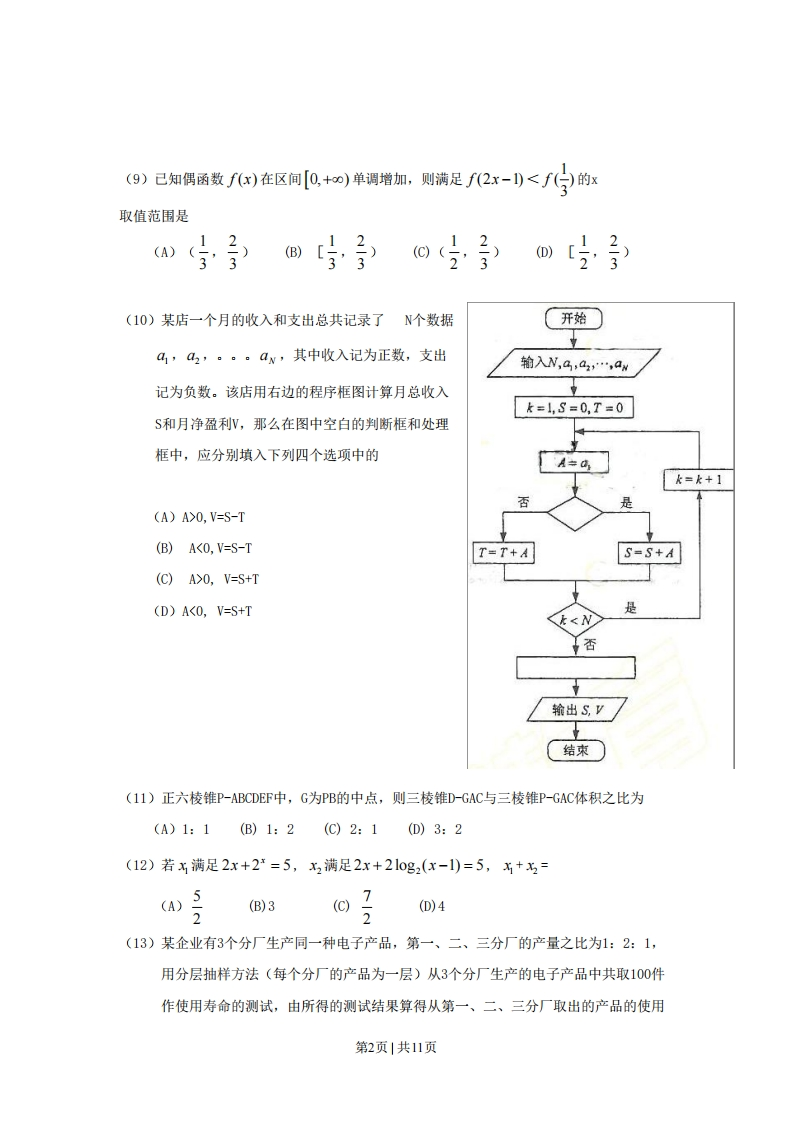 2009年高考数学试卷(理)(辽宁)(解析卷)虎虎1个月前发布关注0.42MB11页2213 第1页 / 共11页 第2页 / 共11页 第3页 / 共11页 第4页 / 共11页 该文档为免费文档,您可直接下载完整版进行阅读 2009年高考数学试卷(理)(辽宁)(解析卷)此内容为免费资源,请登录后查看¥0 登录查看免费资源THE END数学 文本预览 2009年辽宁高考理科数学真题及答案一-选择题(每小题5分,共60分)(1)己知集合M={x|-30,V=S-T(B)AK0,V=S-TS=S+A(C)A>0,V=S+T(D)A 查看更多 收起部分 喜欢就支持一下吧点赞13 分享QQ空间微博QQ好友海报分享复制链接收藏 相关推荐 2010年高考数学试卷(理)(新课标)(海南宁夏)(解析卷)2012年高考数学试卷(理)(江西)(解析卷)2013年高考数学试卷(理)(辽宁)(空白卷)2019年高考数学试卷(文)(新课标Ⅰ)(解析卷)2014年高考数学试卷(理)(新课标Ⅰ)(解析卷)2017年高考数学试卷(文)(新课标Ⅲ)(空白卷)2013年高考数学试卷(文)(四川)(空白卷)2019年高考数学试卷(理)(北京)(解析卷)2018年高考数学试卷(理)(北京)(空白卷)