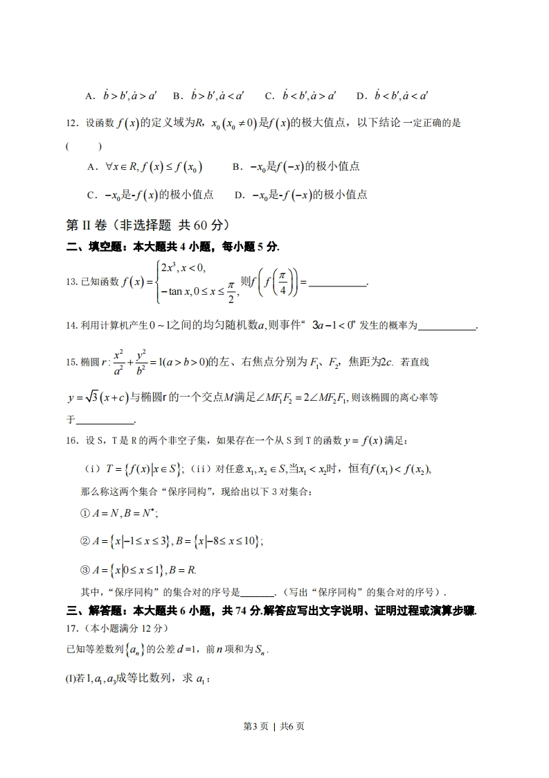 b>0的左、右焦点分别为尽焦距2c若y=V5(x+c)与椭圆r的一个交点M满足∠MEE=2∠MF,F,则该椭圆的离心率等于16.设S,T是R的两个非空子集,如果存在一个从S到T的函数y=f(x)满足:(i)T={f(x)∈S;(ii)对任意x,x2∈S,当x1<时,恒有f(x)