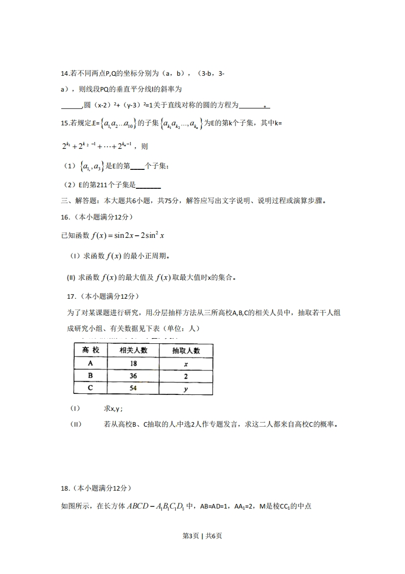 2010年高考数学试卷(文)(湖南)(空白卷)-初高中资料试题文库