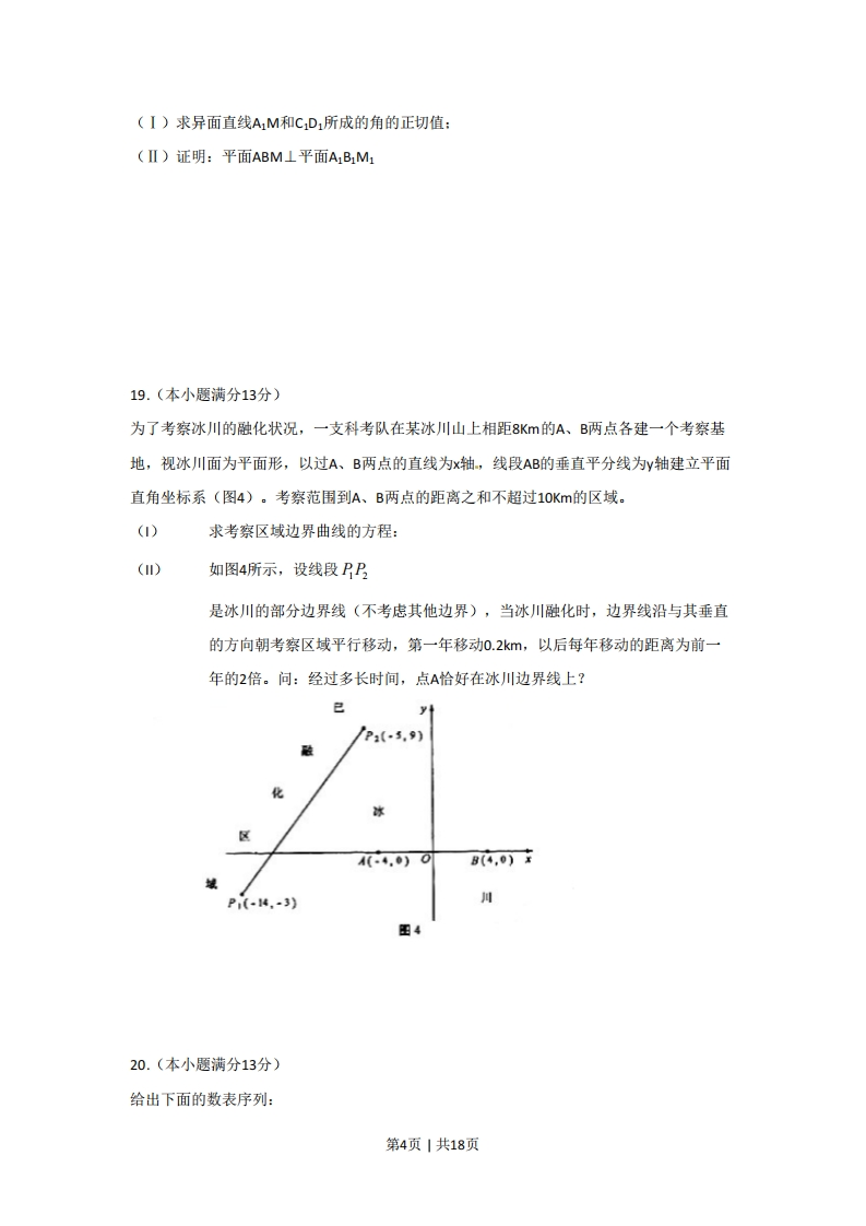 绝密★启封并使用完毕前2010年普通高等学校招生全国统一考试(湖南卷)数学(文史类)一、选择题:本小题共8小题,每小题5分,共40分在每小题给出的四个选项中,只有一项符合题目要求的.1复数名等A.1+1B.1-iC.-1+iD.-1-2.下列命题中的假命题是A.3x∈R,lgx=0B.3x∈R,tanx=lC.x∈R,x3>0D.x∈R,2>03.某商品销售量y(件)与销售价格x(元/件)负相关,则其回归方程可能是A.y=-10x+200B.y=10x+200C.y=-10x-200D.y=10x-2004.极坐标p=cos0和参数方程x=-1-1(t为参数)所表示的图形分别是y=2+1A.直线、直线B.直线、圆C.圆、圆D.圆、直线5.设抛物线y2=8x上一点P到y轴的距离是4,则点P到该抛物线焦点的距离是A.4B.6C.8D.126.若非零向量a,b满足|a日bl,(2a+b)-b=0,则a与b的夹角为A.300B.600C.1200.D.15097.在△ABC中,角A,B,C所对的边长分别为a,b,c,若∠C=120°,c=√2a,则A.a>bB.a