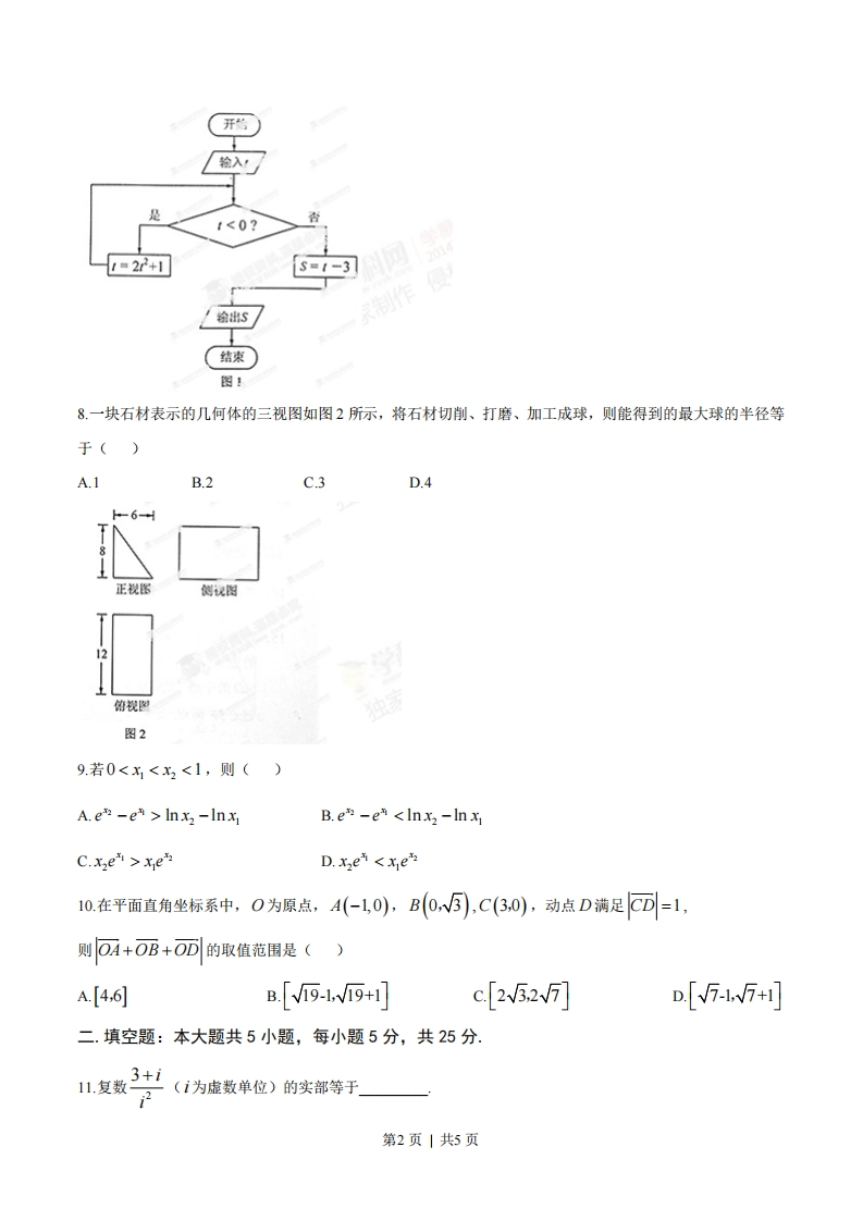 2014年高考数学试卷(文)(湖南)(空白卷)虎虎1个月前发布关注0.34MB5页4512 第1页 / 共5页 第2页 / 共5页 第3页 / 共5页 第4页 / 共5页 该文档为免费文档,您可直接下载完整版进行阅读 2014年高考数学试卷(文)(湖南)(空白卷)此内容为免费资源,请登录后查看¥0 登录查看免费资源THE END数学 文本预览 2014年普通高等学校招生全国统一考试(湖南卷)数学(文)一.选择题:本大题共10小题,每小题5分,共50分.在每小题给出的四个选项中,只有一项是符合题目要求的,1.设命题p:x∈R,x2+1>0,则p为()A.3x。∈R,x6+1>0B.3x∈R,x+1≤0C.o∈R,x6+1<0D.Vx∈R,x2+1≤02.已知集合A={x|x>2,B={x|12B.{x|x>1}.C.{x|2xeD.xe 查看更多 收起部分 喜欢就支持一下吧点赞12 分享QQ空间微博QQ好友海报分享复制链接收藏 相关推荐 2008年高考数学试卷(文)(北京)(解析卷)2010年高考数学试卷(理)(北京)(空白卷)2017年高考数学试卷(文)(北京)(空白卷)2009年高考数学试卷(理)(四川)(解析卷)2023年高考数学试卷(新课标Ⅰ卷)(解析卷)2010年高考数学试卷(文)(四川)(空白卷)2008年高考数学试卷(江苏)(解析卷)2008年高考数学试卷(文)(四川)(非延考区)(空白卷)2012年高考数学试卷(理)(湖南)(空白卷)