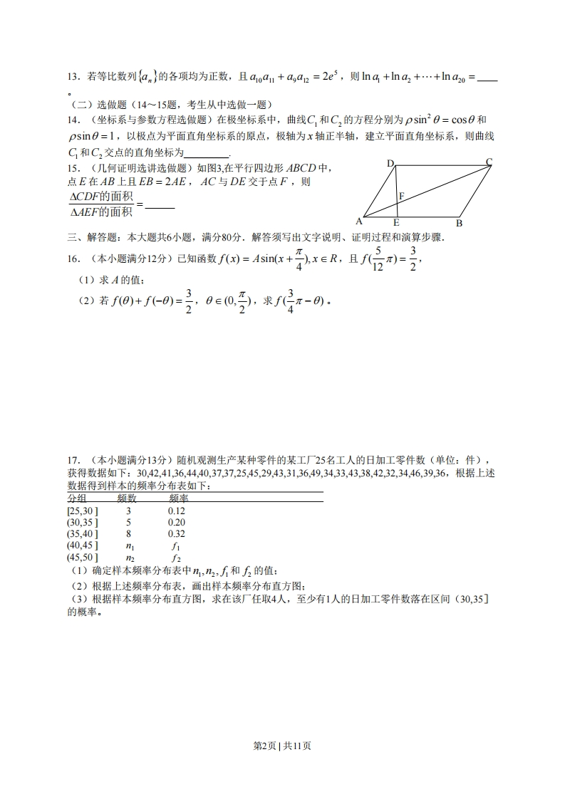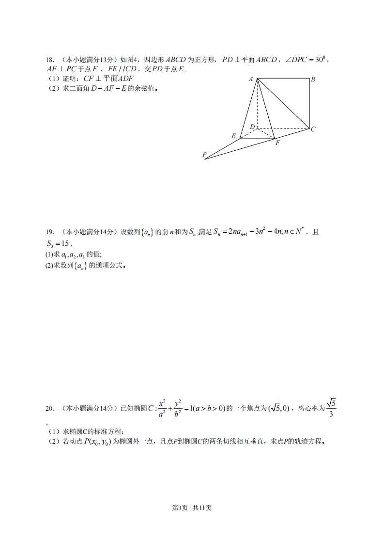 2014年普通高等学校招生全国统一考试(广东卷)数学(理科)一、选择题:本大题共8小题,每小题5分,满分40分.在每小题给出的四个选项中,只有一项是符合题目要求的.1.己知集合M={-1,0,1},N={0,1,2},则MUN=A.{-1,0,1B.{-1,0,1,2C.{-1,0,2}D.{0,1}2.己知复数Z满足(3+4i)z=25,则Z=A.3-4iB.3+4iC.-3-4iD.-3+4iy≤x3.若变量x,y满足约束条件x+y≤1且z=2x+y的最大值和最小值分别为m和n,则m-n=y≥-1A.8B.7C.6D.54.若实数k满足0b>0)的一个焦点为0),离心率为V5(1)求椭圆C的标准方程:(2)若动点P(x,)为椭圆外一点,且点P到椭圆C的两条切线相互垂直,求点P的轨迹方程。第3页1共11页