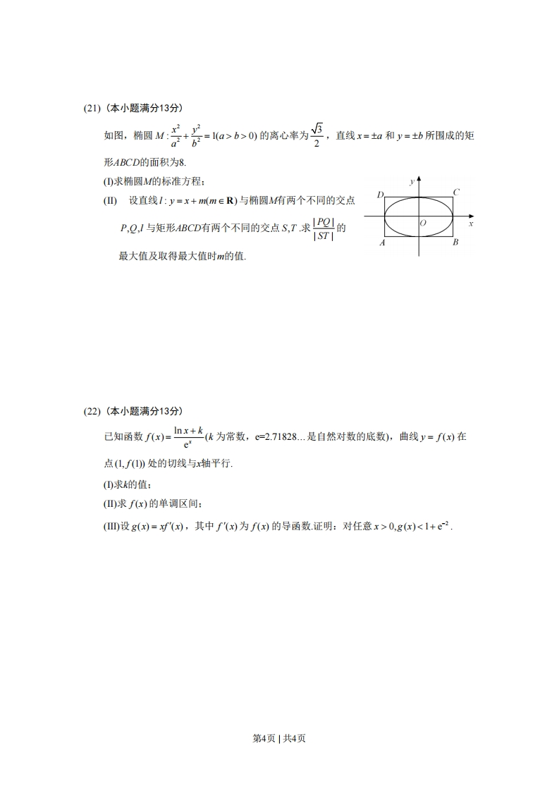 2012年普通高等学校招生全国统一考试(山东卷)文科数学第卷(共60分)一、选择题:本大题共12小题,每小题5分,共60分.在每小题给出的四个选项中,只有一项是符合题目要求的(1)若复数:满足(2-)=11+7iG为虚数单位),则:为(A)3+5i(B)3-5i(C)-3+5i(D)-3-5i(2)已知全集U={0,1,2,3,4},集合A={1,2,3},B={2,4},则(A0UB为(A){1,2,4}(B){2,3,4}.(C){0,2,4}(D){0,2,3,4}通数4F的定义装为(A)[-2,0)U(0,2]B)(-1,0)U(0,2](C[-2,2].(D)(-1,2](4)在某次测量中得到的A样本数据如下:82,84,84,86,86,86,88,88,88,88.若B样本数据恰好是A样本数据都加2后所得数据,则A,B两样本的下列数字特征对应相同的是(A)众数(B)平均数(C)中位数(D)标准差(⑤)设命题p:函数y=sn2x的最小正周期为T:命题q:函数y=cosx的图象关于直线x=无对称则下列判断正确的是2(A)p为真(B)q为假(C)pAg为假D)pvg为真x+2y22,(6)设变量x,y满足约束条件2x+y≤4,则目标函数:=3x-y的取值范围是4x-y2-1,N-20r-(C)[-1,6]D-6(7执行右面的程序框图,如果输入a=4,那么输出的n的值为开(A)2(B)3(C4(D)5P=0.01nr(8)函数y=2sin后-引}0≤x≤9列的最大值与最小值之和为(A)2-√5(B)0(C-1D)-1-√5(9)圆(x+2)}2+y2=4与圆(x-2)2+0y-1)2=9的位置关系为第1页|共4页(A)内切(B)相交(C)外切(D)相离(10)函数y=cos6x的图象大致为2-2f(11)已知双曲线C:F=1(a>0,b>0)的离心率为若抛物线C:x2=2pp>0)的焦x点到双曲线C,的渐近线的距离为2,则抛物线C,的方程为Ax2=83(B)x2=163(C)x2=8yD)x2=16y3(2)没函数f)=,g)=-2+bx若y=)的图象与y=g)的图象有且仅有两个不同的公共点A(x,片),B(32,2),则下列判断正确的是(A)x+x3>0,片+>0(B)x+x2>0,片+片<0(C)x+2<0,片+片>0(D):+2<0,片+<0第Ⅱ卷(共90分)二、填空题:本大题共4小题,每小题4分,共16分(13)如图,正方体ABCD-AB,C,D,的棱长为1,E为线段B,C上的一点,则三棱锥A-DED的体积为(14)右图是根据部分城市某年6月份的平均气温(单位:C℃数据得4额率/甄距到的样本频率分布直方图,其中平均气温的范围是[20.5,2025026.5],样本数据的分组为[20.5,21.5),[21.5,22.5),[22.5,23.5),[23.5,24.),[24.5,25.5),[25.5,26.5].已知样本中平均气温低于22.5℃的城市个数为11,则样本中平均气温0525225253455525平均气温/℃不低于25.5℃的城市个数为(15)若函数f(x)=a(a>0,a≠1)在[-1,2]上的最大值为4,最小值为m,且函数g(x)=(1-4m)N在[0,+o)上是增函数,则a=(16)如图,在平面直角坐标系xOy中,一单位圆的圆心的初始位置在(0,1),此时圆上一点P的位置在(0,0),圆在x轴上沿正向滚动.当圆滚动到圆心位于(2,1)时,OP的坐标为第2页|共4页三、解答题:本大题共6小题,共74分.(17(本小题满分12分)在△ABC中,内角A,B,C所对的边分别为a,b,c,己知sinB(tanA+tanC)=tan AtanC.(①求证:a,b,c成等比数列:(四若a=1,c=2,求△ABC的面积S.(18)(本小题满分12分)袋中有五张卡片,其中红色卡片三张,标号分别为1,2,3:蓝色卡片两张,标号分别为1,2.(①从以上五张卡片中任取两张,求这两张卡片颜色不同且标号之和小于4的概率:(四)现袋中再放入一张标号为0的绿色卡片,从这六张卡片中任取两张,求这两张卡片颜色不同且标号之和小于4的概率,(19)(本小题满分12分)如图,几何体E-ABCD是四棱锥,△ABD为正三角形,CB=CD,EC⊥BD(①求证:BE=DE:(四若∠BCD=120°,M为线段AE的中点,求证:DMI平面BEC,(20)(本小题满分12分)己知等差数列{a,}的前5项和为105,且a0=2a5(①求数列{an}的通项公式:(四对任意m∈N”,将数列{an}中不大于72的项的个数记为b.求数列{b}的前m项和S第3页|共4页
