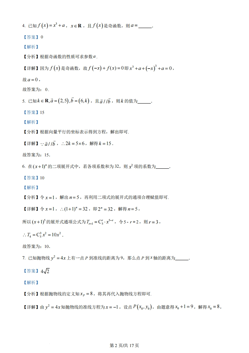 2024年上海市高考数学试卷(网络回忆版)2024.06一、填空题(本大题共有12题,满分54分.其中第1-6题每题4分,第7-12题每题满分5分)考生应在答题纸相应编号的空格内直接填写结果1设全集0=1234,5},集合4=2,4),则A=【答案】{1,3,5}【解析】【分析】根据补集的定义可求A,【详解】由题设有A={1,3,5},故答案为:{1,3,5}2.已知f(x)=x,x>01xs0,则f)=【答案】【解析】【分析】利用分段函数的形式可求f(3)【详解】因为f()=0故f)=5.1,x≤0故答案为:√3.已知x∈R,则不等式x2-2x-3<0的解集为【答案】{x|-1