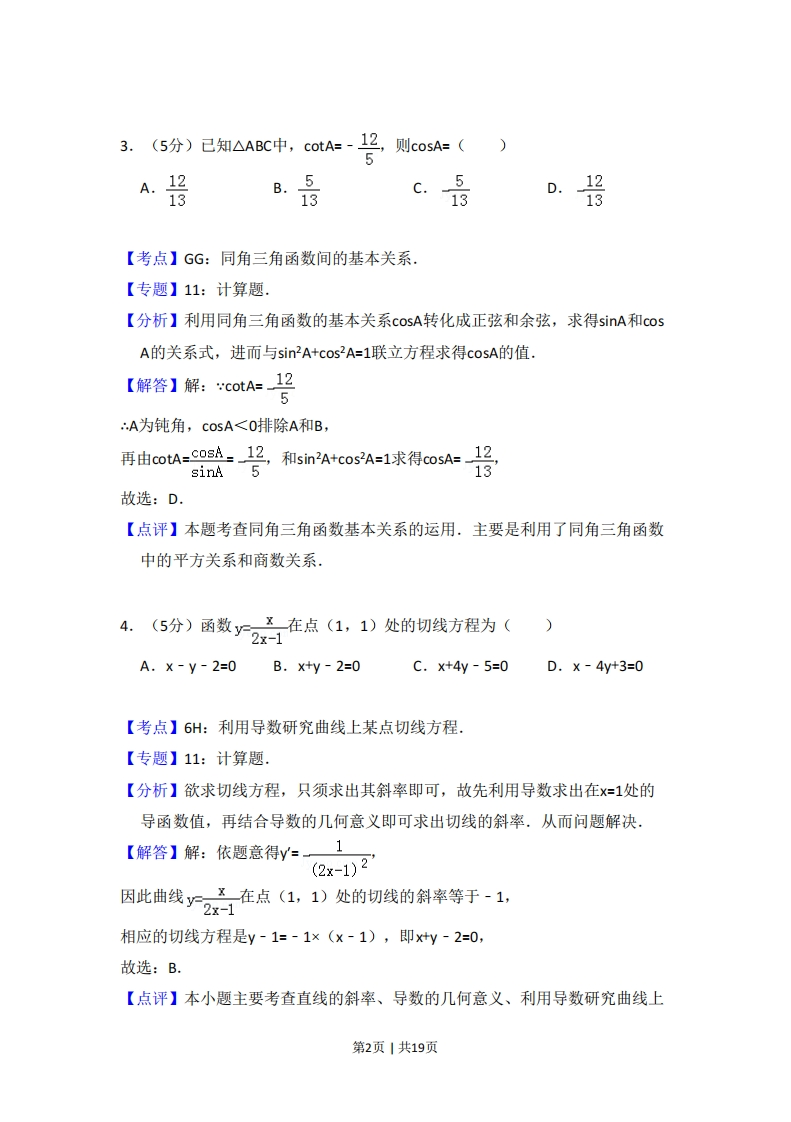 2009年全国统一高考数学试卷(理科)(全国卷Ⅱ)◆考答案与试解析一、选择题(共12小题,每小题5分,满分60分)1.(5分)101=()2-iA.-2+4iB.-2-41C.2+4iD.2-41【考点】A5:复数的运算.【专题】11:计算题,【分析】首先进行复数的除法运算,分子和分母同乘以分母的共轭复数,分子和分母进行乘法运算,整理成最简形式,得到结果。【解答】解:原式-10i(2+i)(2-i)(2+)-2+4i,故选:A.【点评】本题考查复数的乘除运算,是一个基础题,在近几年的高考题目中,复数的简单的运算题目是一个必考的问题,通常出现在试卷的前几个题目中2.(5分)设集合A={x|x>3},B={xX