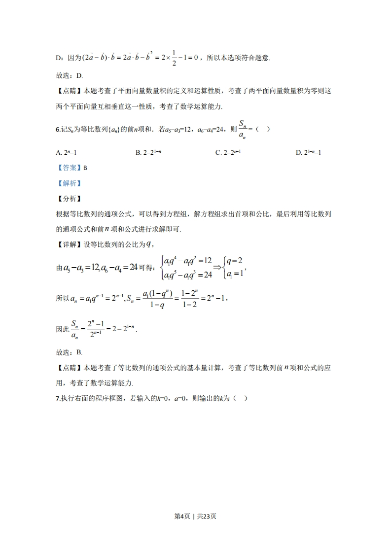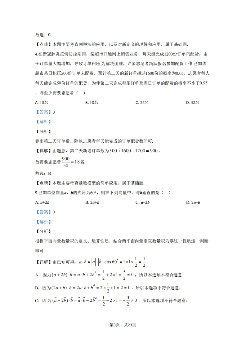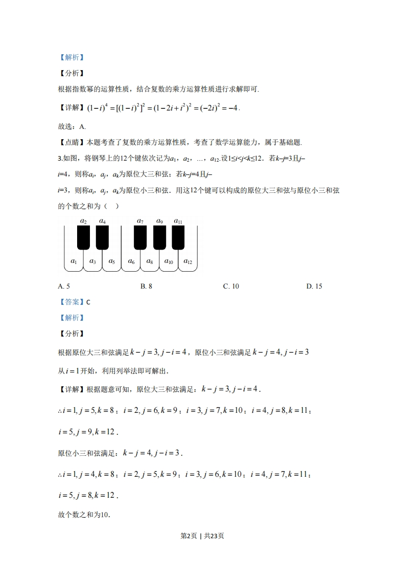 绝密女启用前2020年普通高等学校招生全国统一考试文科数学注意事项:1.答题前,考生务必将自己的姓名、准考证号填写在答题卡上2.回答选择题时,选出每小题答案后,用2B铅笔把答题卡上对应题目的答案标号框涂黑如需改动,用橡皮擦干净后,在选涂其它答案标号框回答非选择题时,将答案写在答题卡上,写在本试卷上无效3。考试结束后,将本试卷和答题卡一并交回.一、选择题:本题共12小题,每小题5分,共60分.在每小题给出的四个选项中,只有一项是符合题目要求的,1.己知集合A={xK3,x∈Z,B={xp1,x∈Z,则AnB=()A.0B.{-3,-2,2,3)C.{-2,0,2}D.{-2,2}【答案】D【解析】【分析】解绝对值不等式化简集合A,B的表示,再根据集合交集的定义进行求解即可」【详解】因为A={x<3,x∈Z}={-2,-1,0,l2,B={x>1xeZ}={x>1或x<-l,x∈Z)所以A∩B={2,-2}故选:D【点睛】本题考查绝对值不等式的解法,考查集合交集的定义,属于基础题,2.(1-i)4=()A.-4B.4C.-4iD.4i【答案】A第1页1共23页【解析】【分析】根据指数幂的运算性质,结合复数的乘方运算性质进行求解即可.【详解】(1-i)°=[1-)2]=(1-2i+2)2=(-2)2=-4故选:A【点睛】本题考查了复数的乘方运算性质,考查了数学运算能力,属于基础题3.如图,将钢琴上的12个键依次记为a1,a2,,a12.设1i