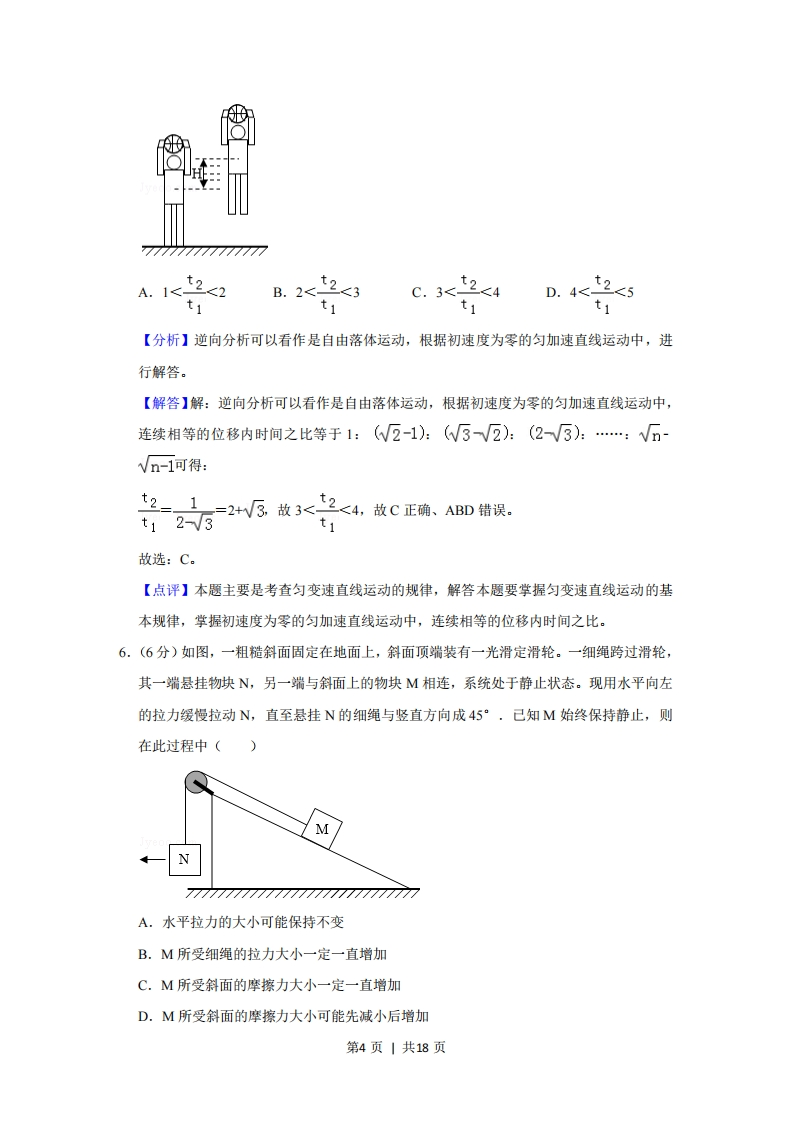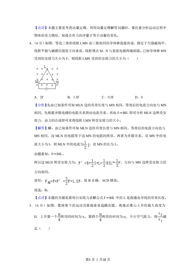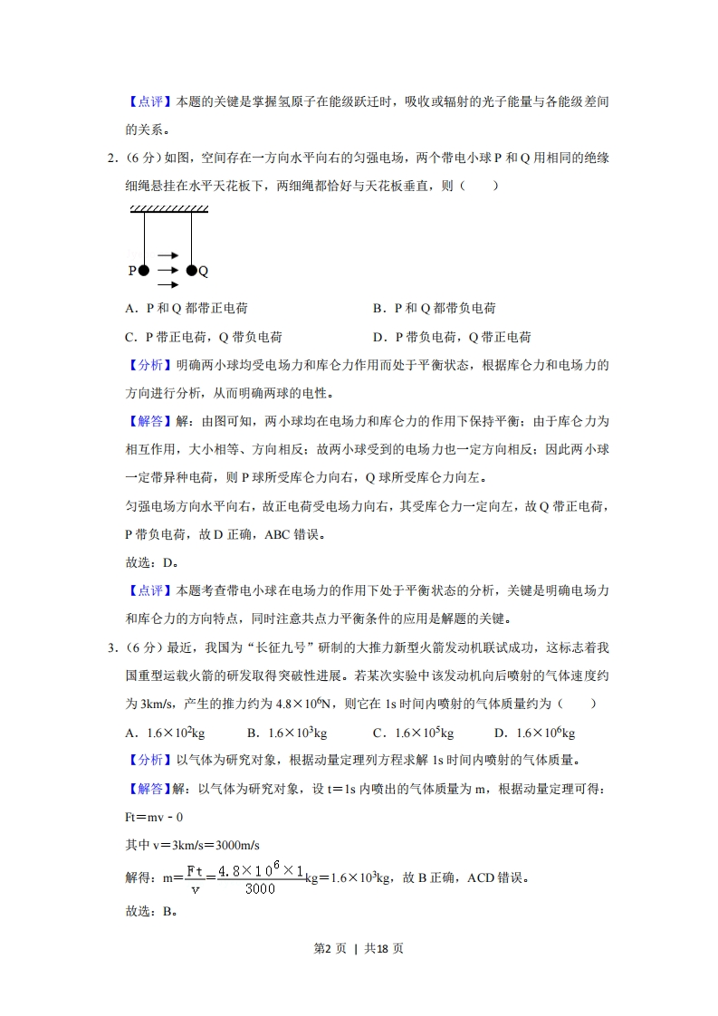 2019年全国统一高考物理试卷(新课标I)◆考答案与试题解析一、选择题本题共8小题,每小题6分,共48分。在年小题给出的四个选项中,第1~5题只有一项符合题目要求,第6~8题有多项符合题目要求。全部选对的得6分,选对但不全的得3分,有选错的得0分。1.(6分)氢原子能级示意图如图所示。光子能量在1.63eV~3.10eV的光为可见光。要使处于基态(=1)的氢原子被激发后可辐射出可见光光子,最少应给氢原子提供的能量为()E/eV39開-3.401-13.60A.12.09eVB.10.20eVC.1.89eVD.1.51eV【分析】氢原子由高能级向低能级跃迁时,所辐射的光子能量等于能级差,由氢原子的能级图可知不可能由高能级向基态跃迁,所以根据其他能级间的能级差结合可见光的光子能量进行除。【解答】解:氢原子从高能级向基态跃迁时,所辐射光子能量最小值为:E=-3.40eV-(-13.6eV)=10.2eV>3.10eV,故可知要产生可见光,氢原子吸收能量后,最起码要跃迁到>2能级:由于E'=E3-E2=-1.51eV-(-3.40eV)=1.89eV,有1.63eV