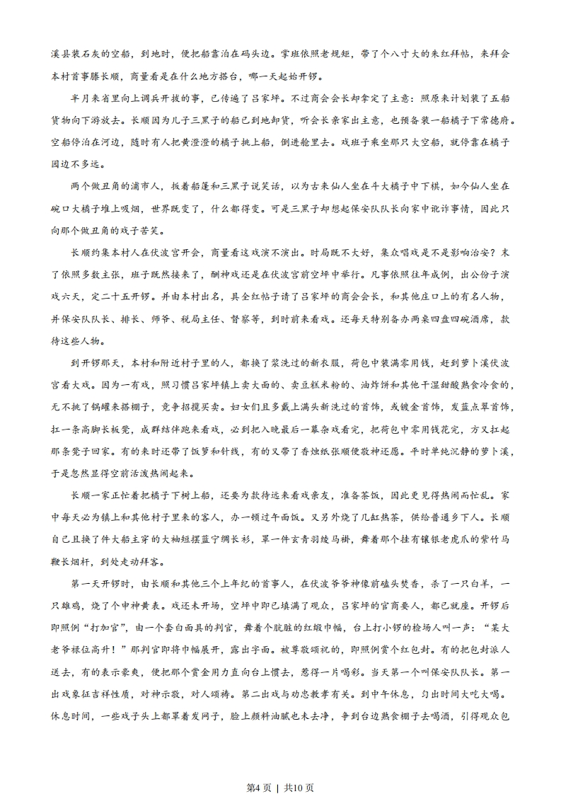 绝密★启用前2023年普通高等学校招生全国统一考试(新高考全国Ⅱ卷)语文注意事项:1答卷前,考生务必用黑色碳素笔将自己的姓名、准考证号、考场号、座位号填写在答题卡上,并认真核准条形码上的准考证号、姓名、考场号、座位号及科目,在规定的位置贴好条形码。2回答选释题时,选出每小题答案后,用铅笔把答题卡上对应题目的答案标号涂黑。如需改动,用橡皮擦干净后,再选涂其他答案标号。回答非选择题时,将答案写在答题卡上。写在本试卷上无效。3考试结束后,将本试卷和答题卡一并交回。一、现代文阅读(35分)(一)现代文阅读I(本题共5小题,19分)阅读下面的文字,完成下面小题。材料一:搞好调查研究,一定要从群众中来、到群众中去,广泛听取群众意见。人民群众的社会实践,是获得正确认识的源泉,也是检验和深化我们认识的根本所在。调查研究成果的质量如何,形成的意见正确与否,最终都要由人民群众的实践来检验。毛泽东同志1930年在寻乌县调查时,直接与各界群众开调查会,掌握了大量第一手材料,诸如该县各类物产的产量、价格,县城各业人员数量、比例,各商铺经营品种、收入,各地农民分了多少土地、收入怎样,各类人群的政治态度,等等,都弄得一清二楚。这种深入、唯实的作风值得我们学习。领导干部进行调查研究,要放下架子、扑下身子,深入田间地头和厂矿车间,同群众一起讨论问题,倾听他们的呼声,体察他们的情绪,感受他们的疾苦,总结他们的经验,吸取他们的智慧。既要听群众的顺耳话,也要听群众的逆耳言:既要让群众反映情况,也要请群众提出意见。尤其对群众最盼、最急、最忧、最怨的问题更要主动调研,抓住不放。这样才能真正听到实话、察到实情、获得真知、收到实效。调查研究必须坚持实事求是的原则,树立求真务实的作风,具有追求真理、修正错误的勇气。现在有的干部善于察言观色,准备了几个口袋,揣摩上面或领导的意图来提供材料。很显然,这样的调查是看不到实情、得不到真知、做不出正确结论的。调查研究一定要从客观实际出发,不能带着事先定的调子下去,而要坚持结论产生在调查研究之后,建立在科学论证的基础上。对调查了解到的真实情况和各种问题,要坚持有一是一、有二是二,既报喜又报忧,不唯书、不唯上、只唯实。第1页」共10页(摘自习近平《谈谈调查研究》)材料二:社会科学并不拥有像自然科学一模一样的实验室,那是没有人能否认的。但是,如果说社会科学研究者并不能控制他所要观察的现象,那也并不完全正确。其实不过是控制的技术问题,而不是能不能控制的问题。在物理实验里用斜面滚球来实验引力,斜板这实验因子并不影响所要观察的引力现象,因为实验者在计算球动的速率中会考虑到这斜板的因子一换一句话,所谓实验并不是弧立现象,而是把所有发生作用的因子都加以充分考虑的意思。观察社会现象时,如果我们能确知观察情境中各种因子对于被观察现象所起的作用,我们同样可以达到自然科学的实验中所具备的条件。在技术上,观察社会现象比观察自然现象更为困难。社会现象并不限于人的动作,而且包括人的动机:动机又受着人所接受的那一套认为应当如是的规律支配,这套规律是社会所共有的,而且是在时间里累积下来的一这是人的生活造用于他所处的具体环境的方法,是在人和物的接触中,在动作里,给人的满足与否的结果里,选择和淘汰出来的,而且也永远在变动之中一在这里我们可以见到社会现象有希不能分的两部分:一部分我们可以在体外看得到的,另一部分,在体外是看不到的。这第二部分必须由经验者本人用语言表达出来,才能使旁观的人明白。观察社会现象的困难常发生在第二部分。谈到这里,我愿意提出最重要的问题来了。那就是社会现象的研究工作中观察者必须和被观察者取得充分合作。合作还不够,必须不分观察者和被观察者而大家一同来分析大家的经验。我在上边已说到科学的观察必须充分确认现象发生的情境,考虑到一切会影响现象的因子。这是实验的真正意义。观察社会现象时,因为语言材料的重要,最容易影响叙述现象正确性的是调查者和所要观察的现象的人事关系。有些不肯正视这关系的学者,只提出一个“客观”的空洞概念。但是“客观”是什么意思呢?是指对观察的现象没有兴趣,或是没有关系么?这是不可能的。一个人去观察一个现象必然是有兴趣的。你自己可以不问这问题,可是被观察的人是不会不问这问题的。你不能不和这些人接触,谈话,问问题。这些人必然要问:“这人为什么要来问我们呢?”一这问题问得对的,因为一切调查的结果必然会影响到被调查者的生活的,不论是好是坏。你说“客观”,人家不能承认,而且人家是对的,因为实际受到影响的是他们,他们不能不防。于是调查者逢着“秘密”和“撒谎”了。其实被调查者的“秘密”和“撒谎”是调查者的“秘密”和“撒谎”的反映。人事很像镜子,你对别人的态度反射成了别人对你的态度。科学的社会研究第一是要认清自己的立场和目的。如果你是想去“敲诈”被调查的人,那么你绝不会得到可靠的材料。天下没有不知道自卫的人,社会科学绝不能从“斗智”的方法上得来。换一句话说,社会研究必须站在被调查者的利益上,你如果要研究乡村,你必须同情农民,为他们服务,