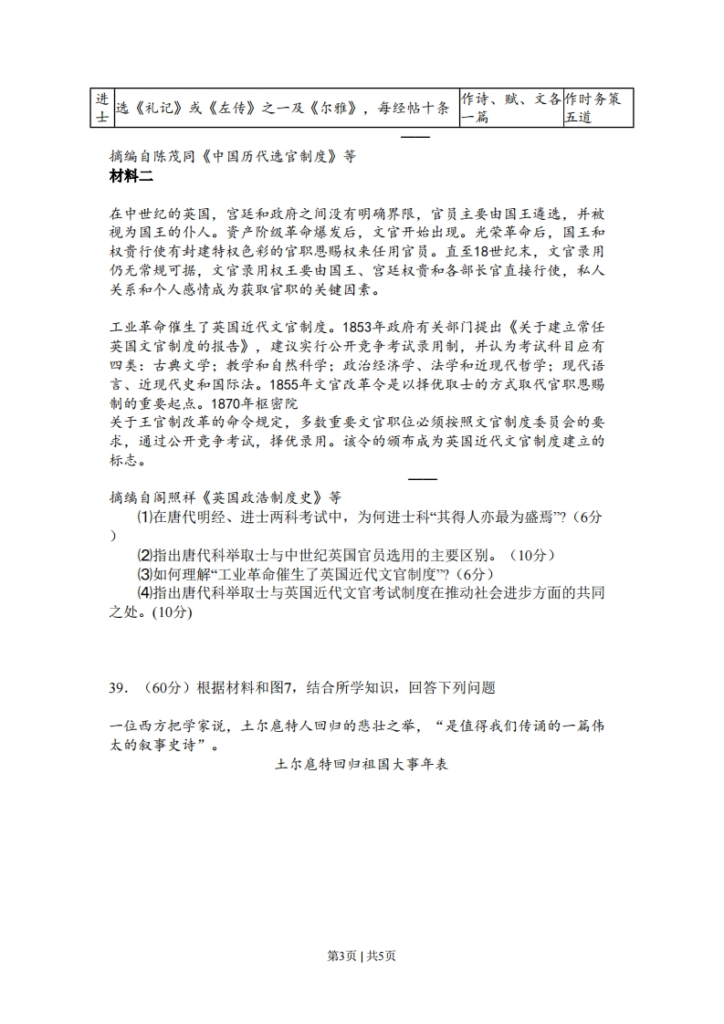 2008年浙江高考文科综合(历史部分)12.中国古代地名中的“阴”、“阳”往往体现了该地与相邻山、水的关系。以下都表示“阴”的方位是A.山之南、水之北B.山之南、水之南C.山之北、水之北D.山之北、水之南13.一位在华美国人士在评论近代中国的一部著作时说:“它是因中英战争刺激而产生的一部成果。我们认为它将极大地摧毁傲慢心态,驱散中国统治者和学究们的愚味无知,证明他们所属的并非地球上的惟一一个国家。”该著作的作者是A.姚莹B.徐继畲C.郑观应D.严复14.洋务运动时期,有一类企业是“由官总其大纲,察其利病,而听该商董等自立条议,悦服众商”。采用选种经营管理方式的企业是A.江南制造总局B.轮船招商局C.发昌机器厂D.耶松船厂15.1920年,梁启超在《欧游心影录》中谈到“科学万能说”时,认为它“当然不能像从前一样的猖獗”。梁启超之所以这样说,是因为A.科学技术在中国的传播遇到阻碍B,科学技术在欧洲的发展水平很高C.科学技术在世界大战中成为战争工具D.科学技术的发展速度减缓16.抗日战争时期,陕甘宁让区“不禁止地主、富农、国民党员参选议员”。这说明陕甘宁边区A.实行民主选举制度B.接受国民政府直接领导C,实现了国菇两党党内合作D.组建了多党联合政府17.美国《时代》周刊评论说,1943年1月相关外交文件的签署“开辟了中国与西方列强之间关系的新纪元”。这一评论指的是A.中国与英、美等国签署宣言,保证团结一致打败法西斯B.中国与英、美两国签署宣言,要求日本无条件归还侵占的中国领土C.中国与英、美两国发表公告。敦促日本无条件投降D.中国与英、美两国签约,宣布废除英美在华治外法权等特权18.1949年10月1日,中华人民共和国成立。当时一些报刊评论说,“中国人民站起来了”。这句话的含义之一是A.新民主主义革命已经完成B.国民党在大陆的势力被彻底清除C.人民掌握了国家权力D.人民代表大会制度确立19.诺贝尔奖获得者道格拉斯诺斯写道:“假设一位古希腊人能被奇迹般地送到1750年的英国,他或她会发现许多熟悉的事物。不过,如果希腊人再晚两个世纪被送来,就会发现,自己宛如置身于一个幻想'的世界,什么都不认识,甚至什么都不理解。”作者提出后一种假设的主要历史依据是A.工业社会形成与发展B.人口爆炸性增长C.经济全球化进程加速D.各国间交往密切20.在1878年的日本,儿童玩拍球游戏时,用10种最值得采用的新事物的名称来代替数字,它们分别是汽灯、蒸汽机、马车、照相机、电报、避雷针、报第1页|共5页