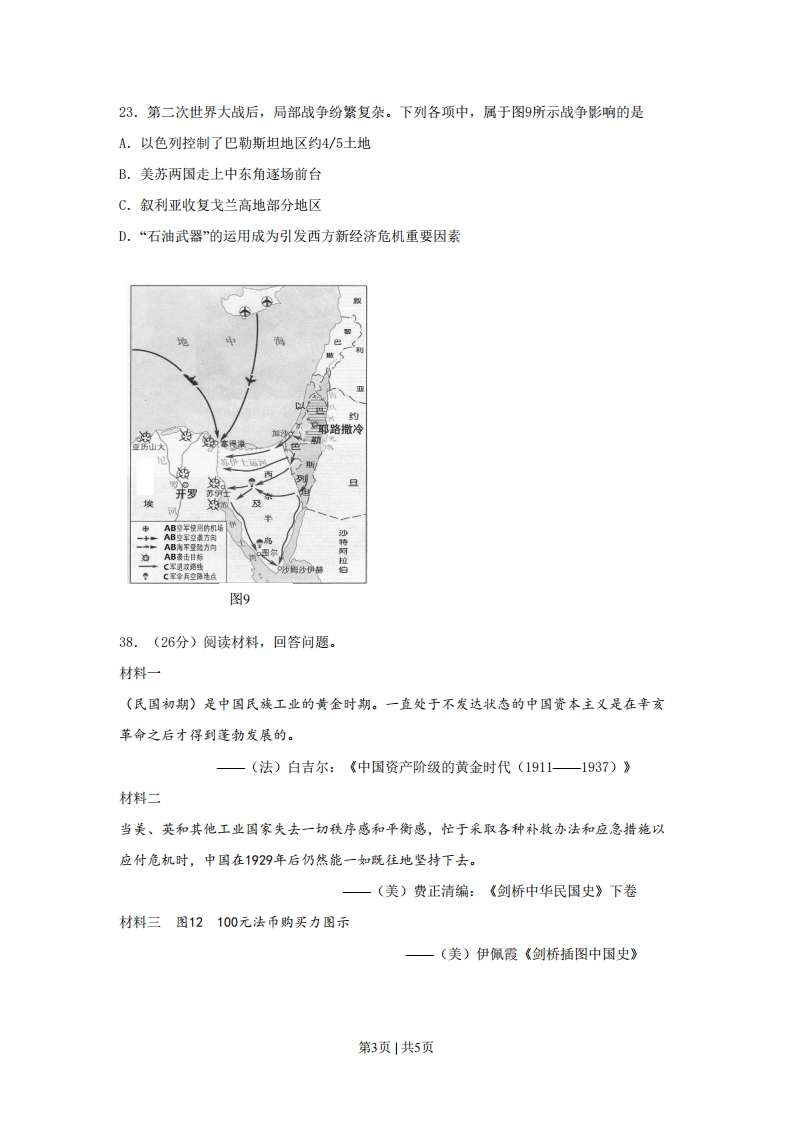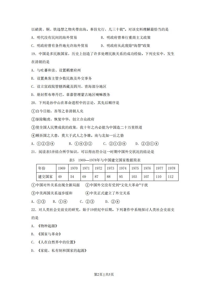浙江省2010年文综(历史)解析12.论文的关键词对内容有着提纲挈领的作用。有一篇评价某历史人物的论文,关键词有“哲学家”“中庸之道*“逻辑学”等,该人物最有可能是A.孔子B.墨子C.普罗塔戈拉D.亚里士多德13.儒道思想犹如中国古代思想的双璧。下列言论中,最能体现道家因循自然、崇尚无为思想的是A.不以人助天B.制天命而用之C.天地不仁,以万物为刍狗D.天行有常,不为尧存,不为桀亡14.农耕技术的发明与改进,推动了农业经济的发展。比较右侧两图,其中图8(1)所示的耕作技术始见于A.战国B.秦C.西汉D.东汉图8(1)图8(2)15.下列是从古诗“二月卖新丝,五月粜新谷。医得眼前疮,剜却心头肉中读出的信息,其中错误的是A.农民生活艰辛B.土地兼并严重C.农副产品进入流通领域D.小农业和小手工业紧密结合16.科举制是我国古代的选官制度。下列各项中,确切反映唐朝科举制情况的是A.其形式都是以官举士B.采用八股考试方式C.分进士等科目考试D.要求应试士人熟读四书五经17.中国古代学术史上曾发生过一次著名的理学家辩论,甲方批评乙方做学问“支离”,乙方批评甲方做学问“太简”。下列各项中,属于当时甲方代表人物主要观点的是A.格物致知B.发明本心C.知行合一D.万物皆只是一个天理18.明代沉船“南澳一号”发掘引起社会关注,学生以此为题进行研究性学习,搜集的一条史料是:“(明中后期,有大臣)请开市舶,易私贩而为公贩不得往日本.…亦禁不得第1页|共5页