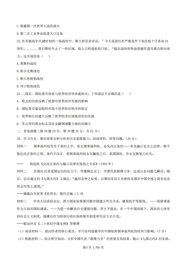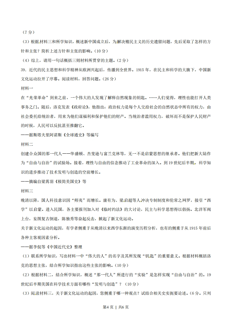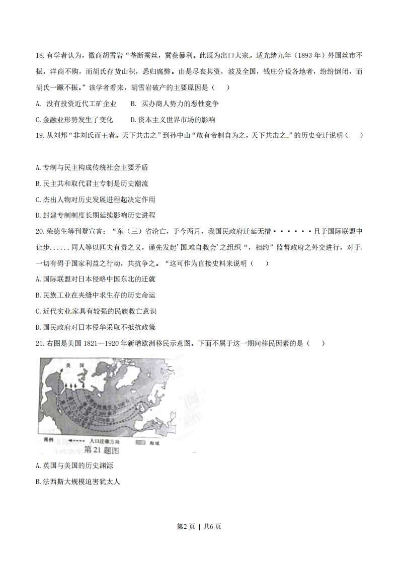 2015年浙江文综历史(含自选模块)解析(精编版)一、选择题(每题4分,共12题,48分)12.宇宙是人生永恒的话题。中外思想家有的认为“宇宙便是吾心”,有的提出“万物始于水”,有的“心外无物”。明确提出上述观点的人物有()①陆九渊②塞内卡③王守仁④泰勒斯A.①②③B.①②④C.①③④D.②③④13.武则天是学界和社会大众关注、热议的历史人物,墓前的无字碑引得千年评说。唐人史著对其事迹记载比较客观,宋明以来,在理学思想影响下史学家评价逐渐发生变化。下列说法中最为合理的是()A.史家主观认识影响史实客观评价B.历史人物评价永远难有定论C.多数人的意见更能反映历史真相D.时代愈近历史的评价愈客观14.下列选项不能反映宗法制及其影响的是()A.“封建亲戚,以藩屏周”B.“谱牒不立,则传久而失宗”C.“父死子继,兄终弟及”D.“内举不避亲,外举不避仇”15.下列地方行政区划级别最低的是()A.汉代益州郡B.唐代扬州C.宋代扬州D.元代顺宁府16,“丝绸之路”是古代沟通东西方文明的桥梁。下列说法不正确的是()A.汉唐以来“海上丝绸之路”被称为“瓷路”B.罗马为中心的地中海地区称中国为“丝国”C.明清政府的严格管理限制了丝路商贸繁荣D.15世纪以前的丝路贸易不具有全球化意义17.历史发展既有传承又有创新。下表所列信息,按朝代(唐、宋、元、明)先后顺序排列正确的是()①通政司、复社、都察院、风力水车②政事堂、北门学士、内作使绫匠、高转筒车③枢密院、土司、木活字、监察御史④中书门下、三司使、《武经总要》、草市A.②③④①B.②④③①C.③②①④D.④②①③第1页|共6页