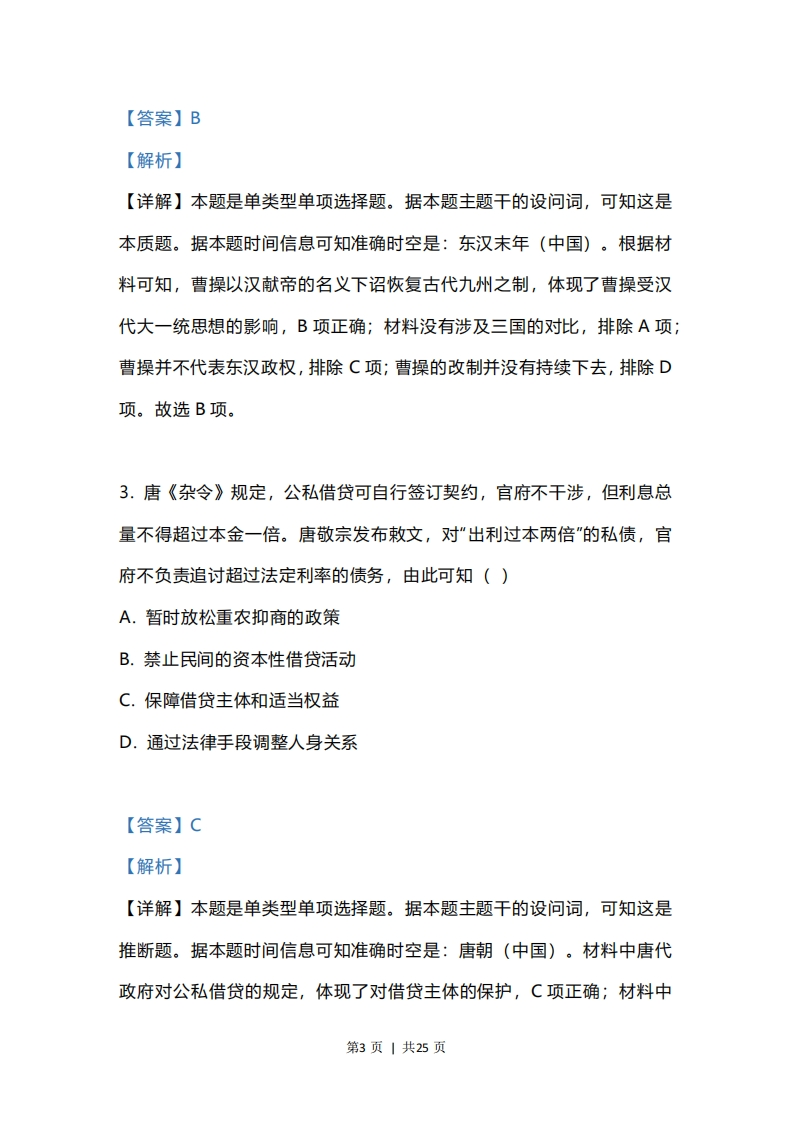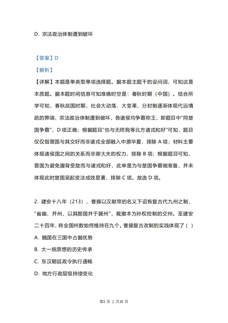 2023年江苏省普通高中学业水平选择性考试注意事项考生在答题前请认真阅读本注意事项及各题答题要求1.本试卷共6页,满分为100分,考试时间为75分钟。考试结束后,请将本试卷和答题卡并交回。2.答题前,请务必将自己的姓名、准考证号用0.5毫米黑色墨水的签字笔填写在试卷及答题卡的规定位置。3.请认真核对监考员在答题卡上所粘贴的条形码上的姓名、准考证号与本人是否相符。4.作答选择题,必须用2B铅笔将答题卡上对应选项的方框涂满、涂黑:如需改动,请用橡皮擦干净后,再选涂其他答案。作答非选择题,必须用0.5毫米黑色墨水的签字笔在答题卡上的指定位置作答,在其他位置作答一律无效。5.如需作图,必须用2B铅笔绘、写清楚,线条、符号等须加黑、加粗。历史一、单项选择题:共16题,每小题3分,共48分。每题只有一个选项最符合题意。1.春秋时期,晋国在兼并虞国等同姓方国时,也与无终戎等北方诸戎和好,以免于在同楚国争霸过程中腹背受敌。这一现象表明当时()A.北方诸戎已融入华夏族B.政治权力下移至卿大夫C.楚国吴起变法成效显著第1页|共25页