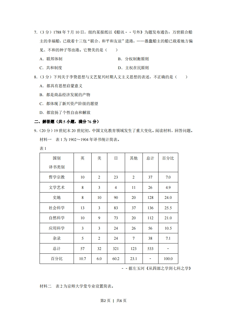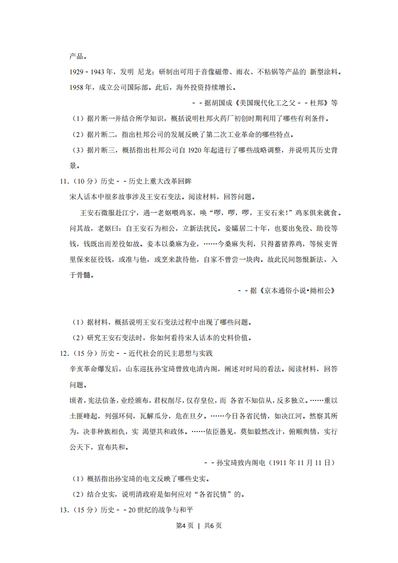 2013年山东省高考历史试卷一、选择题(共8小题,每小题3分,满分24分)1.(3分)《周礼·考工记》载:建造王城,九里见方,四周各三门,南北和东西大道各九条,宫城之左为宗庙,右为社稷,前为朝,后为市。它体现的主要思想是()A.中央集权B.中正有序C.敬天法祖D.君权神授2.(3分)《汉书·食货志》记载:“贾人有市籍,及家属,皆无得名田,以便农。敢犯令,没人田货。”该禁令的主要目的是()A,限制商人经营范围B.增加赋税收入C.加强商人户籍管理D.保护小农经济3.(3分)自秦汉至宋元,中国政治制度变革的总体趋势是()A.地方政府的自主性逐渐被削弱B.国家行政权逐渐转移到君主手中C.宰相逐渐退出权力中心D.世卿世禄的贵族政治逐渐被打破4.(3分)如图文字节选自一则清代档案史料。其撰拟者应是()嘉庆二十一年七月初六日内阁奉上谕:和世泰等奏,噗咭縱国贡使连日演习礼仪极为敬谨…即派苏楞颜,广惠各戴原品顶戴沿途伴送,钦此。A.中书省B.内阁C.军机处D.礼部5.(3分)1923年,陈独秀说:“五四运动虽然未能达到理想的成功,而在此运动中最努力的革命青年,逐接受世界的革命思潮,由空想而实际运动,开始了中国革命之新的方向。”陈独秀所说的“中国革命之新的方向”指()A,武装革命B.无产阶级革命C.民族革命D.国民革命6.(3分)20世纪50年代,中苏两国对中国的某一新生事物产生了不同看法。前者认为它是“中国加速社会主义建设,向共产主义过渡的最好形式”:后者则认为20-30年代的苏联类似尝试,但“在经济上是不合理的”。“它”是指()A.土地改革B.“一五”计划C.社会主义三大改造D.人民公社第1页1共6页