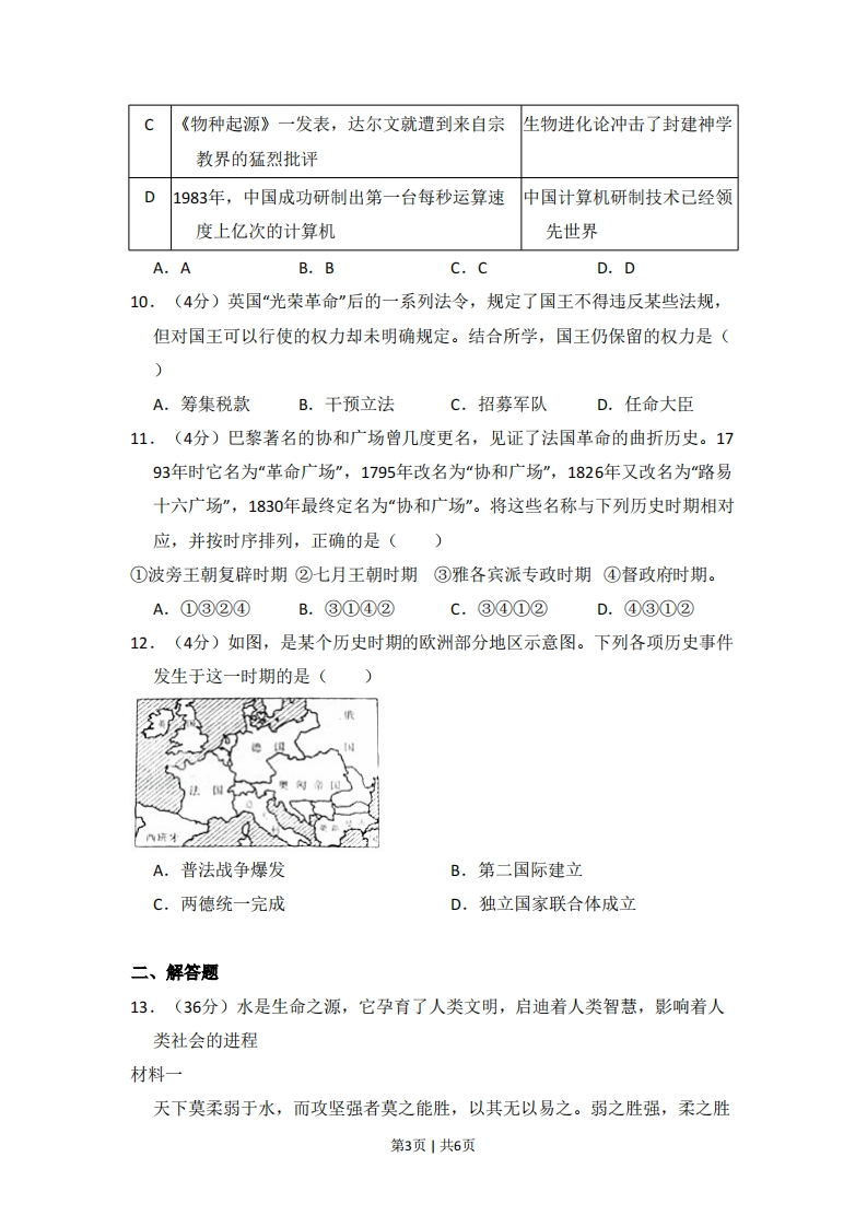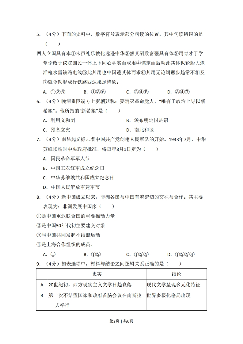2012年北京市高考历史试卷一、选择题1.(4分)秦汉至明代,商人长期处于社会底层,一个重要原因是统治阶层认为商人()A.不事生产B.不尊儒术C.不敬宗族D.不纳租税2.(4分)如图,是中国某一朝代都城内中枢机构的分布示意图。该都城是(兴圣苑皇宫城李宫大因书等A.唐长安B.宋开封C.元大都D.明北京3.(4分)下列各选项中,中外名著创作于同一世纪的是()A.顾炎武《天下郡国利病书》与洛克《政府论》B.郭守敬《授时历》与牛顿《自然哲学的数学原理》C.曹雪芹《红楼梦》与薄伽丘《十日谈》D.关汉卿《窦娥冤》与莎士比亚《哈姆雷特》4.(4分)有西方学者在分析第二次鸦片战争爆发原因时说:“欧洲人渴望中国做出更大的让步以实现其贸易扩张。”若对此进行补充,下列选项正确的是()A.西方国家希望通过“最惠国待遇”获得更多权益B.西方国家想借“修约”名义摄取更多的在华利益C,清政府没有遵守《南京条约》各项条款的规定D.总理衙门拒绝了西方提出的公使进驻北京的要求第1页1共6页