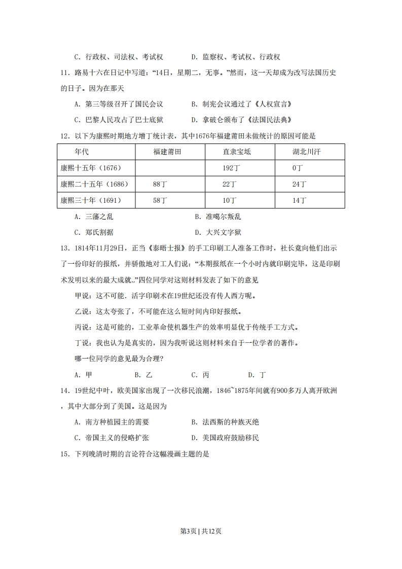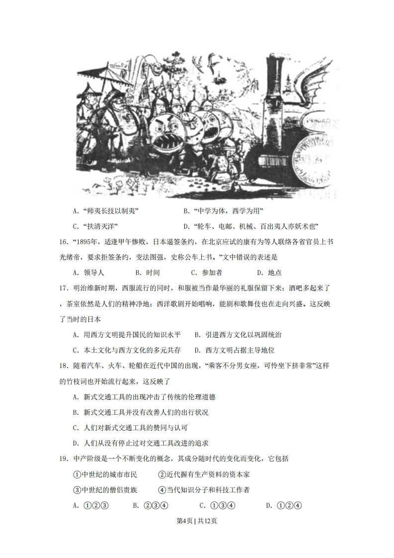 绝密★启封前2009年普通高等学校招生全国统一考试历史(上海卷)一、选择题(共60分,每小题2分。每题只有一个正确选项。)1.史书有不同的体裁,不同的体裁又有不同的特征。纪传体史书的特征是A.以事件为中心B.以人物为中心C.以年代为中心D.以制度为中心2.将右图陶蓉上的刻面符号与根形文字丛、甲骨文}M圣书字☑和群尼基字母文字√人√相比照可推断该陶尊最有可能出士于A.两河流域B.中国C.地中海东岸D.埃及3.①春秋时期,郑国发生了火灾,掌管祭祀的官员建议子产焚烧玉石向上天祈祷,②子产说:“天道远,人道迩,非所及也。”③于是积极组织灭火。④这说明当时以祭祀为核心的宗教意识日益淡薄,而世俗理性逐渐占据上风。上述材料中属于历史评价的是A.①B.②C.③D.④4.在古希腊文中,“民主政治”(demokrafia)一词由“人民”(demos)和“统治”(kratos)复合而成。这说明,古代希腊的民主政治强调A.公民的广泛参与和直接管理B.公民的私有财产神圣不可侵犯C.民事案件均由陪审法庭判决D.全体居民均享有民主权利5.在宋代的官员中,有三分之一以上来自平民家庭,这是因为当时推行的选官制度是A.军功爵制B.察举制C.九品中正制D.科举制6.下列地图中表示草原文明的是第1页1共12页