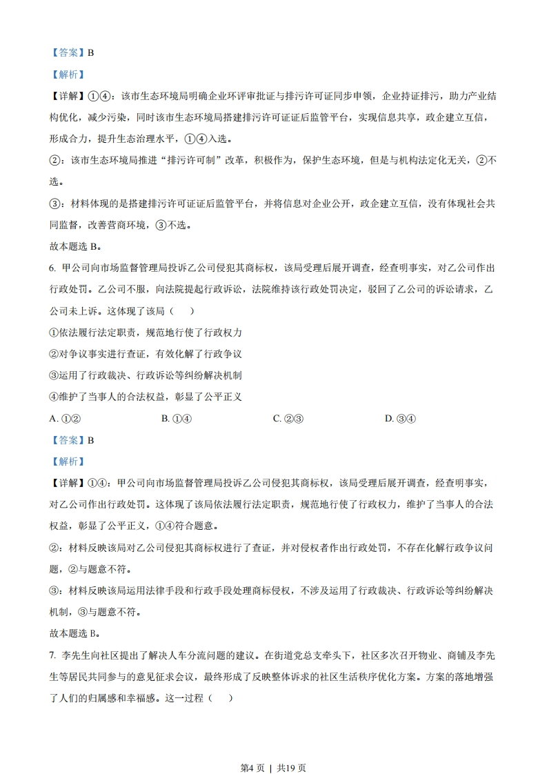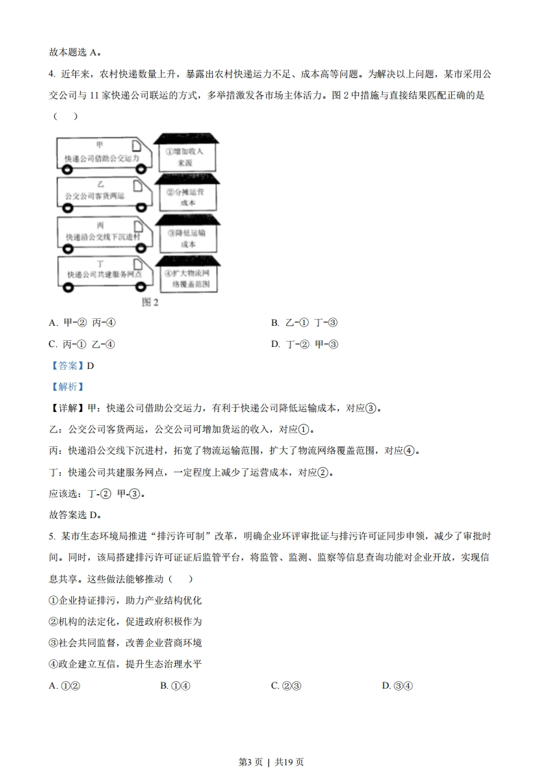 2023年辽宁省高考政治试题一、选择题:本题共16小题,每小题3分,共48分。在每小题给出的四个选项中,只有一个是符合题目要求的。1.习近平指出:“概括提出并深入阐释中国式现代化理论,是党的二十大的一个重大理论创新。”“新中国成立特别是改革开放以来,我们用几十年时间走完西方发达国家几百年走过的工业化历程,创造了经济快速发展和社会长期稳定的奇迹…实践证明,中国式现代化走得通、行得稳。”这印证了()①中国的现代化成就是在中国式现代化理论指导下取得的②中国式现代化为推进中华民族伟大复兴开辟了广阔前景③中国式现代化理论实现了马克思主义中国化时代化新的飞跃④中国的现代化既遵循了现代化的一般规律,又符合中国实际A.①②B.①③C.②④D.③④【答案】C【解析】【详解】①:在马克思主义现代化理论的指导下,中国共产党团结带领中国人民开辟了中国式现代化新道路,①不选。②④:中国式现代化道路用几十年时间走完西方发达国家几百年走过的工业化历程,创造了经济快速发展和社会长期稳定的奇迹,即遵循了现代化的一般规律,又符合中国实际,为推进中华民族伟大复兴开辟了广阔前景,②④入选。③:习近平新时代中国特色社会主义思想实现了马克思主义中国化时代化新的飞跃,③不选。故本题选C。2.辽沈战役是党中央及时抓住战略决战时机打响的具有决定意义的重要战役,历时52天血与火的洗礼取得胜利,使全国军事形势达到一个新的转折点。历史昭示未来。这启示我们,在新时代东北振兴、辽宁振兴的“辽沈战役”中要()①树立正确的历史观,抓住机遇,努力实现振兴发展新突破②坚持以人民为中心的发展思想,放手发动和依靠人民群众③以顽强斗争赢得主动,努力形成对国家重大战略的有力支撑④积极融入新发展格局,紧紧依靠改革创新探索合适的发展道路A.①②B.①③C.②④D.③④【答案】D【解析】第1页」共19页