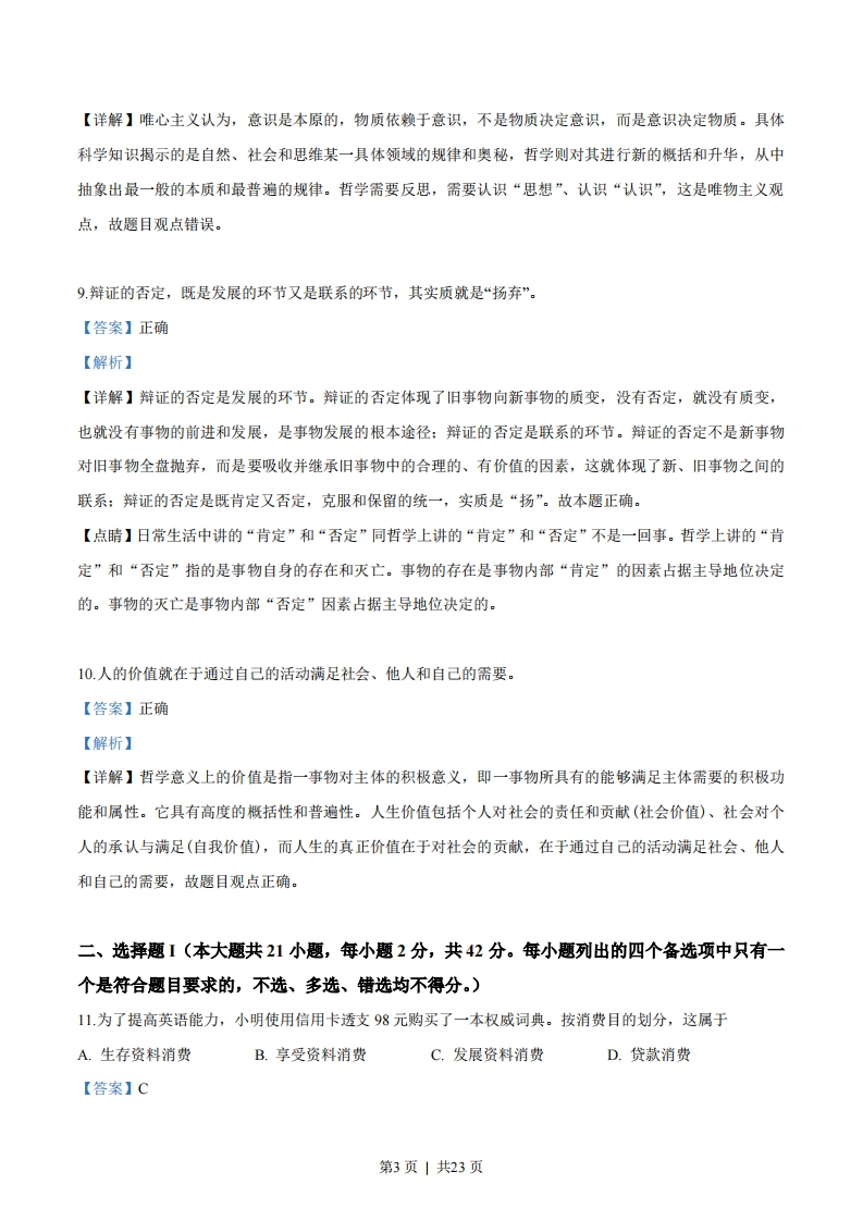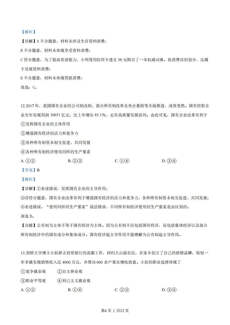 浙江省2018年4月高考选考科目政治试题一、判断题(本大题共10小题,每小题1分,共10分。判断下列说法是否正确,正确的请将答题纸相应题号后的T涂黑,错误的请将答题纸相应题号后的F涂黑。)1通常说来,银行存贷款利率下调,上市公司的股票价格也会下跌。【答案】错误【解析】【详解】股票是股份公司发行的所有权凭证,是股份公司为筹集资金而发行给各个股东作为持股凭证并借以取得股息和红利的一种有价证券。股票投资的收入包括两部分,一部分是股息或红利收入,另一部分收入来源于股票价格上升带来的差价。股票价格受多种因素的影响,具有不确定性,因此,股票是一种高风险的投资方式。通常说来,银行存贷款利率下调,上市公司的股票价格会上涨,故题目观点错误。2.合理确定个人所得税起征点,有利于实现社会公平。【答案】正确【解析】【详解】个人所得税是调节个人收入分配,是实现社会公平的有效手段,因此合理确定个人所得税起征点,有利于实现社会公平。故本题正确。3.规范市场秩序的治本之策,是建立健全社会保障制度。【答案】错误【解析】【详解】形成以道德为支撑、法律为保障的社会信用制度是规范市场秩序的治本之策,只有完备的法律、法规,才能引导和规范人们沿着正确的轨道进行经济活动,有助于社会主义市场经济健康发展,有利于保护经营者和消费者的合法权益。故本命题错误。4浙江省“最多跑一次”政务改革的根本目的是转变政府职能。【答案】错误【解析】【详解】浙江省“最多跑一次”政务改革的根本目的是进一步提高政府为经济生活发展服务、为人民服务的能力和水平。故题干说法错误。第1页|共23页