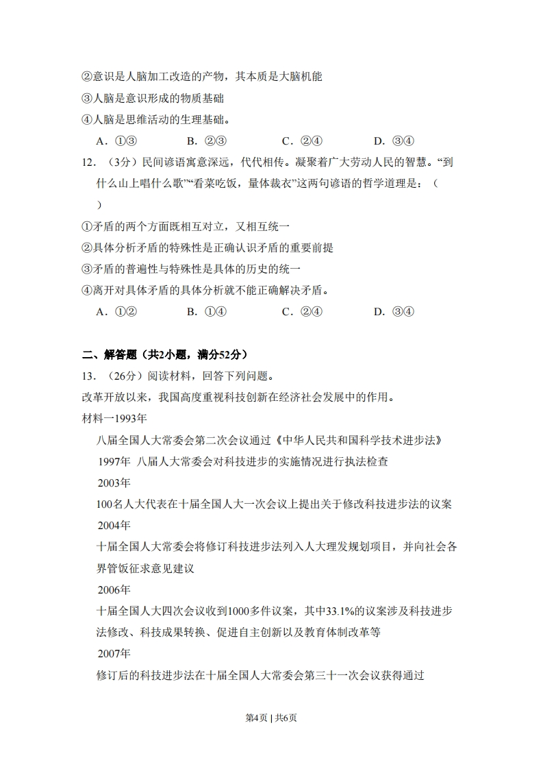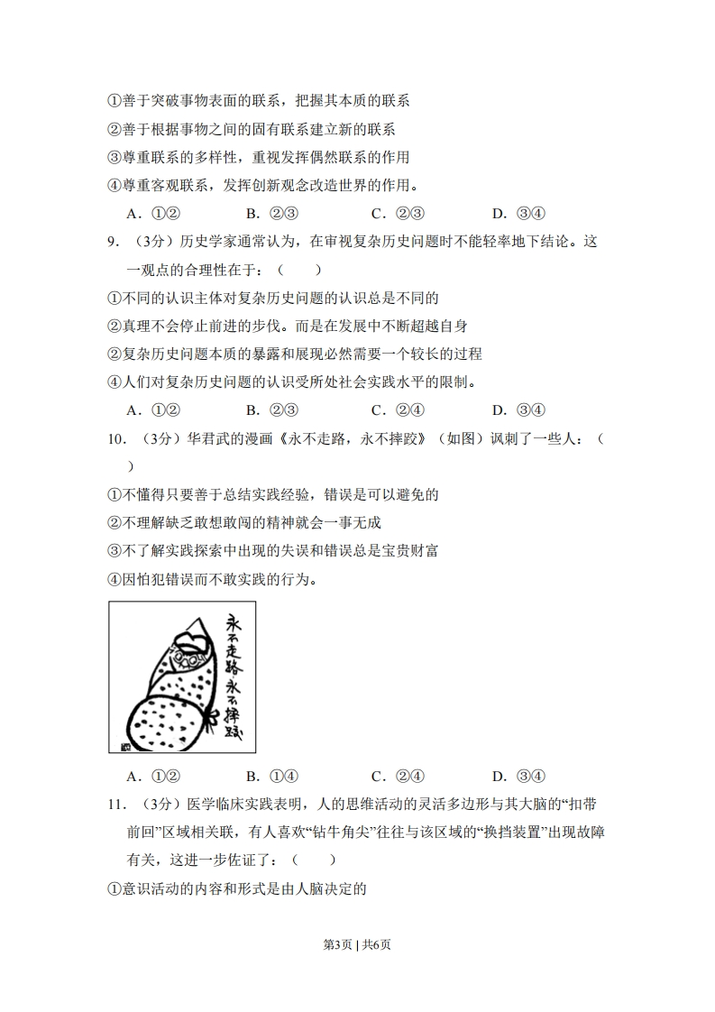 2011年全国高考政治试卷(新课标)一、选择题(共12小题,每小题3分,满分36分)1.(3分)2010年某企业的生产条件处于全行业平均水平,其单位产品的价值量为132元,产量为10万件。如果2011年该企业的劳动生产率提高10%,而全行业的劳动生产率提高20%,其他条件不变,则该企业2011年生产的商品价值总量为()A.1452万元B.1320万元C.1210万元D.1100万元2.(3分)2009年中国已成为世界第一出口大国,但同时也应该看到,一些出口产品是为国外品牌加工生产的,中国企业只能赚取微薄的代工费,绝大部分利润由品牌持有者获得,这说明()A,自主品牌建设是中国企业提高出口利润的重要途径B,中国企业出口盈利水平高低取决于是否拥有核心技术C.品牌竞争已成为中国企业参与国际竞争最重要的方式D.强大的制造能力是中国企业出口的核心竞争力3.(3分)月饼是中国传统的节日食品,随着生活水平的提高,人们对中秋月饼的消费日益多样。除枣泥、豆沙等传统月饼外,消费者也开始购买海鲜、木瓜、冰激凌等新式月饼。多样化的月饼消费()A.取决于月饼消费观念的多样化B.导致了月饼消费结构C.促进了月饼生产的多样化D.促进了月饼质量的提高4.(3分)随着科学技术的快速发展,信息技术已融入我们生活的方方面面。如打电话、看电视等。“十二五”规划纲要将新一代信息技术产业纳入国家七大战略性新兴产业,并实施产业创新发展工程,我国之所以重视新一代信息技术产业,因为()A.它利润高,发展快B.它是基础性产业C.它改变人们得生活方式D.它是提高生产效率的有效手段第1页1共6页