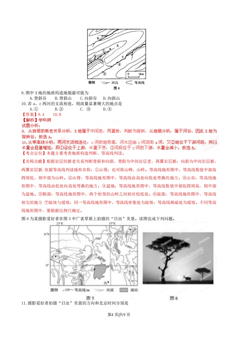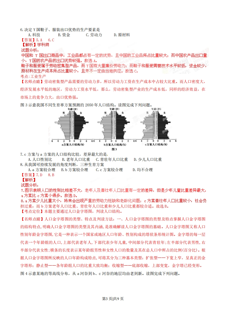 2015年普通高等学校招生全国统一考试(福建卷)文科综合地理注意事项:1.本试卷分第I卷(选择题)和第Ⅱ卷(非选择题)两部分。答题前,考生务必在将自己的姓名、考生号填写在答题卡上。2.回答第I卷时,选出每小题选出答案后,用铅笔把答题卡上对应题目的答案标号涂黑,如需改动,用橡皮擦干净后,再选涂其他答案标号。写在试卷上无效。3.回答第Ⅱ卷时,将答案卸载答题卡上,写在试卷上无效。4.考试结束,将本试卷和答题卡一并交回。第I卷(非选择题)本卷共36小题,每小题4分,共144分。在每小题给出的四个选项中,只有一项最符合题目要求的。图1示意我国某地循环农业生产模式。读图完成下列问题。好场气挂车场衣产品有机峰肥花卉水是图11.该地的农业地域类型是A.季风水田农业B.乳畜业C大牧场放牧业D.混合农业2.该生产模式的农产品深受消费者青睐是因为A.价格低廉B.减耗保鲜C.绿色优质D.品种丰富。【答案】1.D2.C【解析】学科网试题分析:1.图示该地既种植水稻,发展种植业,又饲养牛羊,发展畜牧业,因此属于混合农业,而季风水田农业、乳畜业和大牧场放牧业等都属于单一农业生产类型。故选D。2.该生产模式不适用化肥,所产农产品无污染,绿色忧质,深受消费者的青睐,而农产品的价格不会低:农产品的新鲜程度与该生产模式无关:消费者青昧的是农产品的质量,而不是农产品的种类。故选C。【考点定位】本题主要考查判断农业生产地域类型、生态农业的优势【名师点睛】混合农业是一种在同一农场中将两种或两种以上农业生产类型有机结合在一起的农业生产地域类型,且每一种农业生产类型的规模相当。所以判断是否属于混合农业,一是看该地农业生产类型的多少,二是看每一种农业生产类型是否达到一定规模。生态农业的生产以资源的永续利用和生态环境保护为重要前提,根据生物与环境相协调适应、物种优化组合、能量物质高效率运转、输入输出平衡等原理。通过食物链网络化、农业废弃物资源化,充分发挥资源潜力和物种多样性优势,建立良性物质循环体系,促进农业持续稳定地发展。在整个生产过程中,减少化肥、农药的投入,使农产品绿色无污染。图2示意某区域气候要素的逐月变化。读图完成下列问题。第1页供9页1100600304032020100.20123456789101112月份)则23.造成4-6月蒸发量逐月上升的主要原因是①气温上升②降水量增多③风力增大④云量减少A.①②B.②③C.①④D.③④4.该区域当年水分累积亏损最为严重的月份是A.3月B.6月C.9月D.12月【答案】3.A4.B【解析】试题分析:3.蒸发量的大小受气温和降水的影响,图示时间段的气温上升,降水量增多:而无法判断风力的大小,降水增多表明云量增加。故选A。4.降水量小于蒸发量为水分亏损,图示36月份均为亏损,所以累积亏损量6月份最多;而其它月份没有出现水分亏损。故选B。【考点定位】本题主要考查曲线图的判读、联系有关气候知识。【名师点睛】读图的一般步骤①看图名,图名是一幅图的灵魂所在,它直接表明了这幅图要反映的主题。因此,在做有图的题的时候,首先要看图名,这样有助于我们确定考察方向、及时调动和回忆相关知识。②看图例,图例能够告诉我们地图中各个事物所代表的地理意义以及各个地理事物之间的联系,帮助我们准确的理解地图想要表达的具体内容。因此,在做题的时候,一定要看好图例,扣准点是保证高分的重要条件。③看图注,有部分地图,除了图名和图例外还会有一些文字的注释。这些注释往往会是我们解题时重要的突破点和切入口,所以,读图的时候一定要仔细认真,不能错过地图所要传递的信息。④提取图示信息,图示有价值的信息是我们解题关键,把有价值信息标注出来,便于分析其规律性。⑤回归材料、找遗漏点,在所有的地理高考题中,题目呈现的方式几乎都是图文结合的。在答题时,除了地图中所反映的知识点外,还要回归材料,认真研读,从材料中提取相关信息点,避免知识点的遗漏,同时,一些比较难、偏的题,材料里面还往往隐藏着解题的突破点。因此,所有的读图题最终都要回归材料。一个国家中某种商品出口的比较优势程度用R值表示,R值越大表示该商品出口的优势越强。表1为2005-2012年中国、东南亚Y国出口商品比较优势前六位的R值。读表完成下列问题。表1中国商品敲诉局品鞋子假袋办公设线织制品电信设各R债4.03.53.43.32.82.7Y国商品鞋于水产品天然绿胶的难可可服统器物R值12.310.910.08.15.54.85.中国,Y国商品出口的共同特点是A.工业品比较优势强B.工业品所占比重小C.农产品比较优势弱D.农产品出口总量大第2页供9页