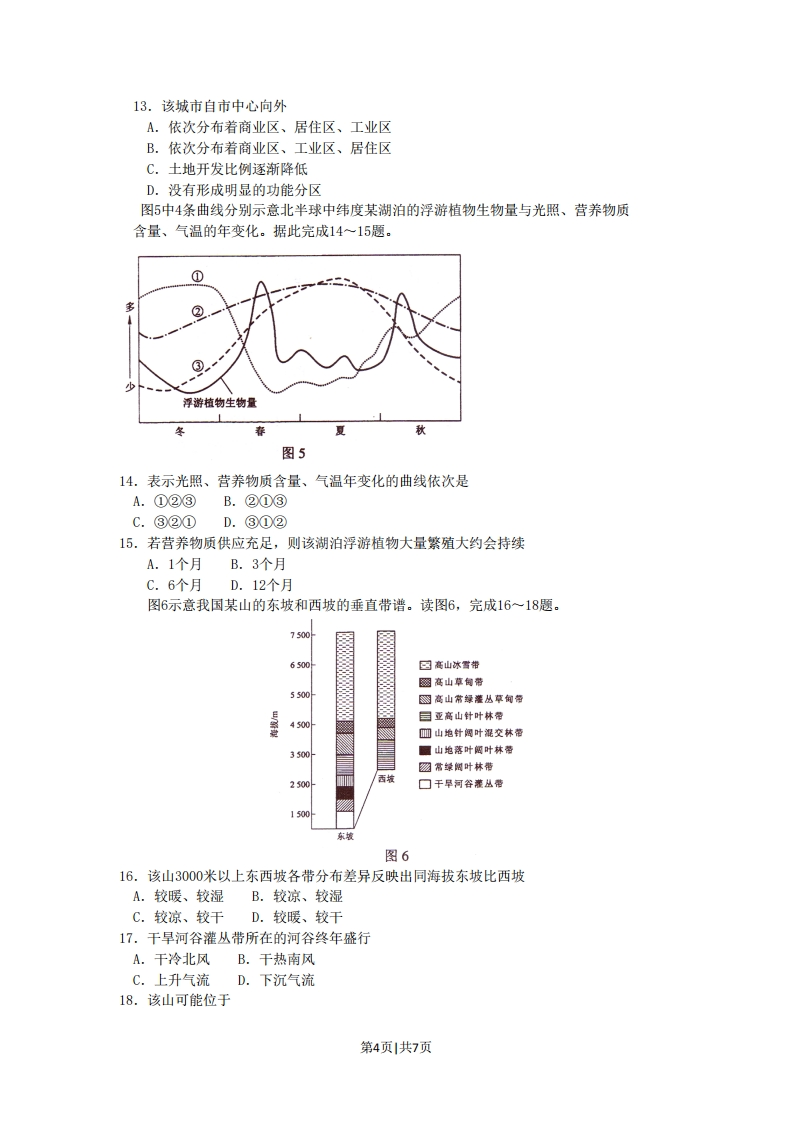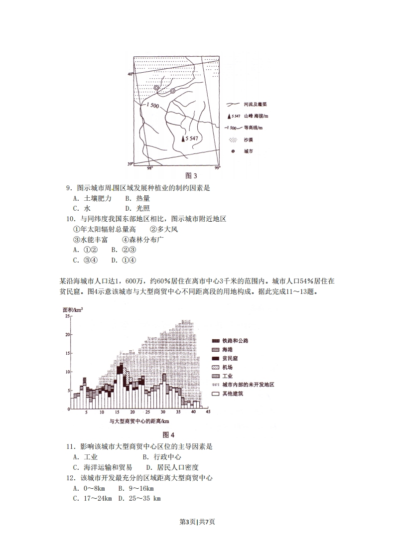 2010年普通高等学校招生全国统一考试(海南卷)地理注意事项:1.本试卷分第I卷(选择题)和第II卷(非选择题)两部分。答卷前,考生务必将自己的姓名、准考证号填写在答题卡上。2.回答第I卷时,选出每小题答案后,用铅笔把答题卡上对应题目的答案标号涂黑。如需改动,用橡皮擦干净后,再选涂其它答案标号。写在本试卷上无效。3.回答第1I卷时,将答案写在答题卡上。写在本试卷上无效。4.考试结束后,将本试卷和答题卡一并交回。第I卷一、选择题(本题共有20小题,每小题3分,共60分。在每小题给出的四个选项中,只有一项最符合题目要求。)2010年春季,冰岛的火山多次喷发,使一些地区的航空运输业遭受了巨大损失。读图1,完成1-3题。格1.冰岛位于陵A.极地高压带B.副极地低压带C.西风带D.副热带高压带2.冰岛多火山是因为它处于A.亚欧板块和美洲板块挤压地带B.亚欧板块和美洲板块分离地带C.美洲板块和非洲板块挤压地带D.美洲板块和非洲板块分离地带西画火山3.火山喷发后,一些空域限制飞行是因为这些空域图1A.雷暴频发B.严重缺氧C.有大量可燃气体D.火山灰浓度大图2示意4个国家人口的性别一年龄构成。读图2.完成4~5题。第1页1共7页①男性1”a证切00w”人f”w物调人口数量/的万图24.图示四国中人口自然增长率最高的是A.①B.②C.③D.④5.图示四国中30~39岁人口数量从少到多依次是A.①③④②B.②④③00.④②③①D.①②③④高档圣诞树由鲜活的树装饰而成。低档圣诞树是由仿真材料制成的,价格低,销量大。改革开放后,我国深圳成为世界低档圣诞树的重要生产基地。2|世纪初,由于生产成本提高,深圳圣诞树产业受到很大冲击,有的企业将圣诞树生产转移到江西赣州,但是出口效益没有明显提高。据此完成6一8题。6.从世界范围看,影响高档圣诞树生产的主导因素是A.市场距离B.热量条件C.劳动力价格D.种植技术7.低档圣诞树生产由发达国家至我国深圳再向赣州转移的主要原因是A.我国圣诞树销量快速增长并由沿海向内地扩展B.世界圣诞树市场由欧美向东亚地区转移C.发达国家原材料枯竭而我国原材料丰富D.企业追求较低的劳动力成本8.企业将圣诞树生产由深圳转移到赣州后,提高了出口圣诞树的A.运输成本B.用地成本C.原材料成本D.劳动力成本读图3。完成9~10题。第2页1共7页