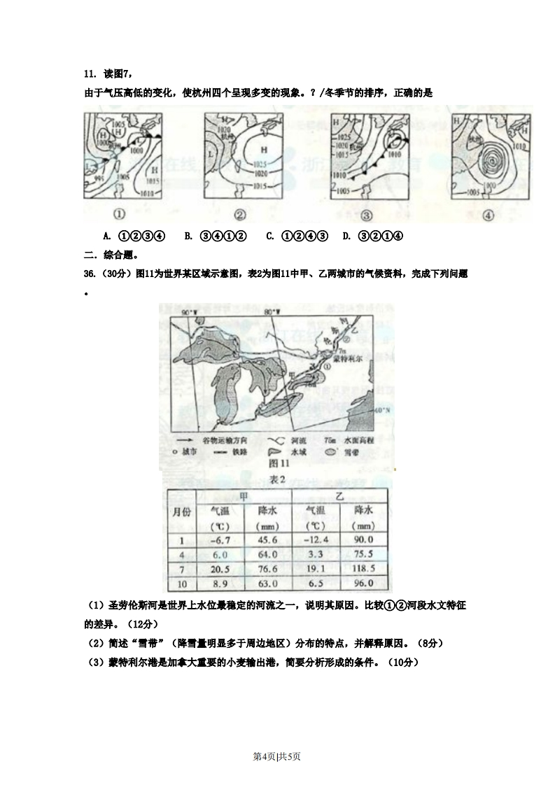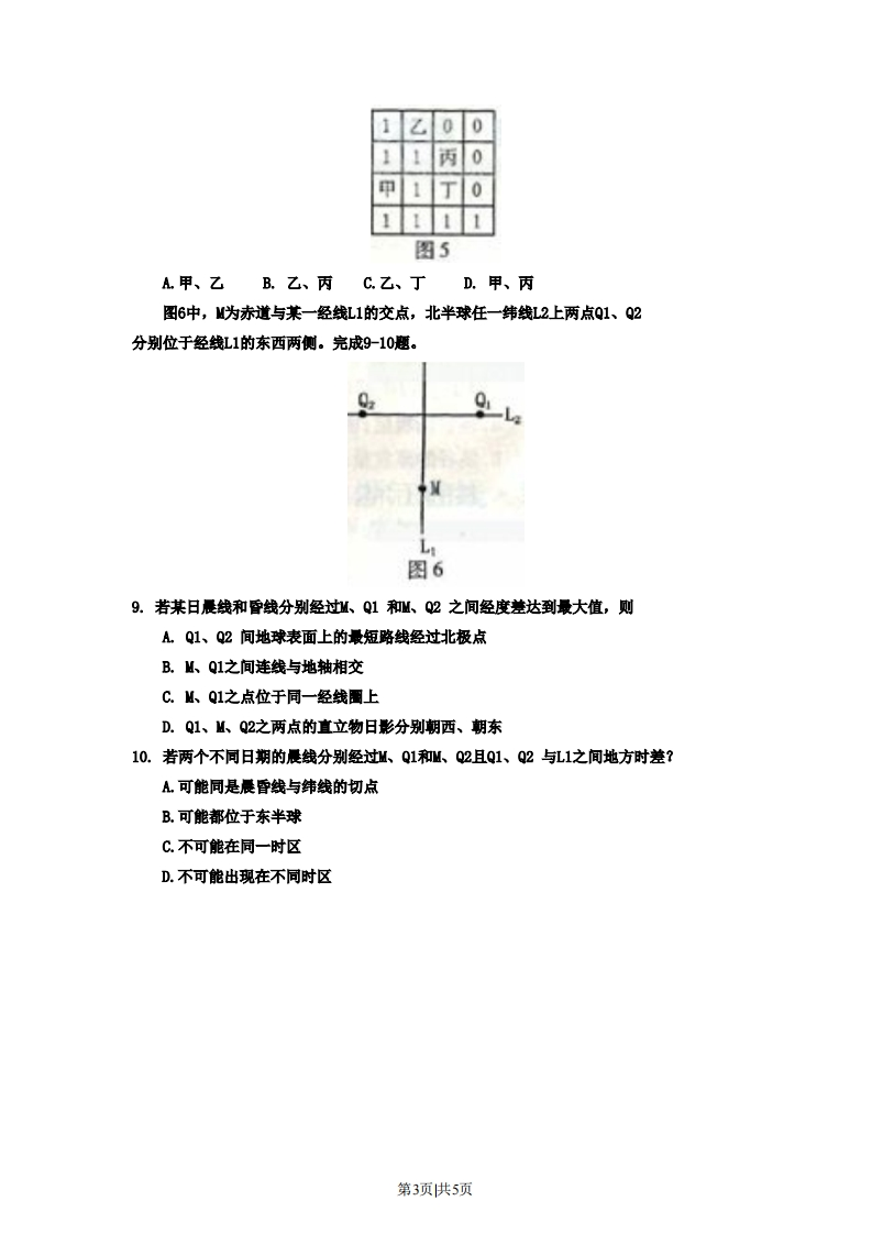 2011年普通高等学校招生统一考试浙江省文综卷地理部分解析表1为2005年联合国城市研究机构发布的关于日本、沙特阿拉伯、泰国、英国等四国的城市化水平表。完成1-2题。表1国家甲ò丙丁城市化水平(%908366321.甲、乙、丙、丁一次代表的国家是A.日本、英国、泰国、沙特阿拉伯B.日本、英国、沙特阿拉伯、泰国C.英国、沙特阿拉伯、日本、泰国D.英国、日本、沙特阿拉伯、泰国2.下列关于乙国的叙述,正确的是A.人口出生率低B.人口集中在东南沿海城市C.人口集中在中部平原城市D.人口集中在绿洲城市某校学生于台风过后,前往某山区实习,观测溪谷的变化情况。图1为学生实习地区的等高线地形图。完成3-4题。3.学生在实习中可以得知的是A溪谷的坡度:溪谷的蒸发量B.溪谷的蒸发量:溪流的水深和流速C.溪谷的台风降雨量:堆积物粒径大小D.溪谷的坡度;堆积物粒径大小4.学生在溪谷的观测点是点.甲、乙B.甲、丙C.乙、丁D.乙、戊十八世纪量累—达令盆地开始种植小麦,饲养绵羊,现已成为溴大利亚主要的农产品输出地,随着农场规模、数量的扩大与量累河河水引用过多,该地陆续出现了一些环境问题。读图2(粗箭头代表主要流向,细箭头代表次要流向),完成56题。5.下列农业经营棋式中,最能说明上述农业地域类型特征的是第1页供5页场TN升物1物件物作明(2A.①B.②c.③D.④6.目前该盆地最有可能产生的环境问愿是①土襄盐碱化②河水流量增多,河口附近侵蚀作用增强③钙中的水生动植物大量纂殖④湿地菱缩,牧草生长不良A①④B.②③C.③④D.①②流1km范围内。图3中“空间资料”是该市地形与河流的空间分布,每一小方格代表1km2(该区面积共16m2):“属性资料”是地形和河流的类别资料。根据选址条件,对照空间资料和属性资料,符合条件为“1”,不符合条件为“0”,若同一小方格内有两种不同属性类别分布时,为求简化,占有面积比例较大的属性作为评估对象。完成7一8题。地彩河流间资料属性号类别■a地编号类别资料6■玻地滋河流图37.图4是四幅“河流”资料的评估值图,其中正确的是0①O©图4A.①B.②C.③D.④8.跟据地形、河流两项资料的综合评估,图5中适合布局工厂的地点是第2页供5页