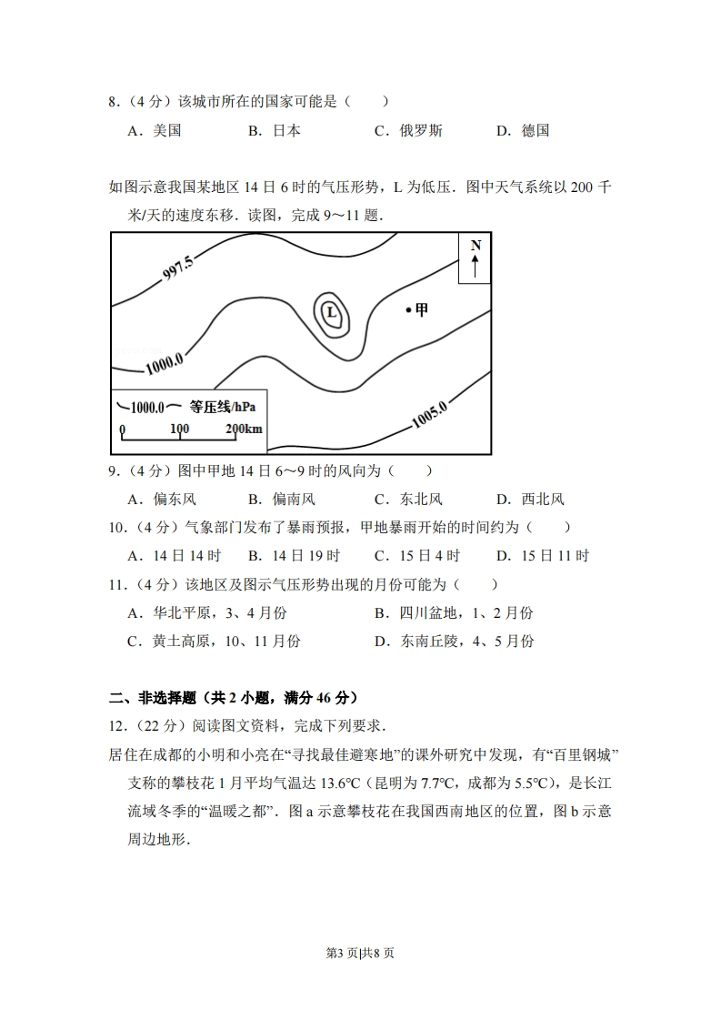 2013年全国统一高考地理试卷(新课标I)一、选择题(共4小题,每小题0分,满分0分)哥伦比亚已经成为世界重要的鲜切花生产国.读图,完成1~3题.120°90美国120北回归线60墨西哥9009哥伦比亚60°1.(4分)每年情人节(2月14日),在美国销售的鲜切玫瑰花多来自哥伦比亚.与美国相比,在此期间,哥伦比亚生产鲜切花的优势自然条件是()A.地形较平B.降水较丰沛C.气温较高D.土壤较肥沃2.(4分)哥伦比亚向美国运送鲜切玫瑰花宜采用()A.公路运输B.铁路运输C.航空运输D.海洋运输3.(4分)目前,墨西哥已成为哥伦比亚在美国鲜切花市场的竞争对手,与哥伦比亚相比,墨西哥开拓美国鲜切花市场的优势在于()A,运费低B.热量足C.技术高D.品种全如图为45N附近某区域的遥感影像,其中深色部分为植被覆盖区,浅色部分为高原荒漠区:终年冰雪覆盖的山峰海拔3424米,距海约180千米.读图,完成4~6题.第1页供8页01020km山蜂脉植被覆盖区高原荒漠区4.(4分)导致图示区域降水差异的主导因素是()A.大气环流B.地形C.纬度位置D.洋流5.(4分)该区域位于()A,亚欧大陆太平洋沿岸地区B.亚欧大陆大西洋沿岸地区C.北美洲大西洋沿岸地区D.北美洲太平洋沿岸地区6.(4分)该区域中山脉西坡山麓的自然植被属于()A.常绿阔叶林B.常绿硬叶林C.针阔叶混交林D.草原如图示意某城市20世纪80年代和90年代平均年变化率.当前,该城市总人口约1300万.据此完成7~8题.3总人口增张32国际净迁移白妖僧长总人口增:2国际净迁移用100国内净迁移国内净迁移31981w199n1991w200037.(4分)20世纪90年代和80年代相比,该城市()A.总人口增长速度加快B.总人口减少C.人口自然增长率降低D.人口净迁入量减少第2页供8页