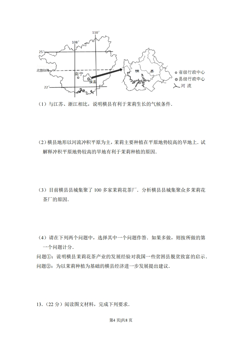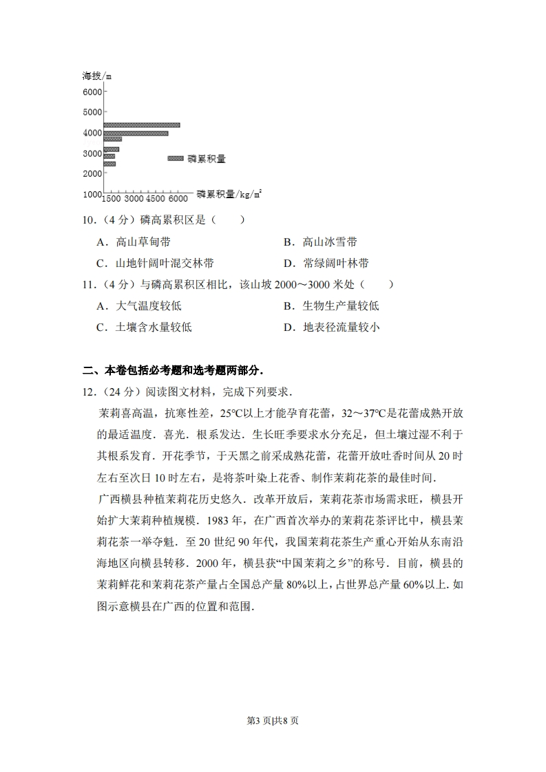 2016年全国统一高考地理试卷(新课标I)一、本卷11个小题,每题4分,满44分.在每小题给出的四个选项中,只有一项是符合题目要求的我国是世界闻名的陶瓷古国,明清时期,“瓷都”景德镇是全国的瓷业中心,产品远销海内外,20世纪80年代初,广东省佛山市率先引进国外现代化陶瓷生产线,逐步发展成为全国乃至世界最大的陶瓷生产基地.2003年,佛山陶瓷主产区被划入中心城区范围,陶瓷产业向景德镇等陶瓷产地转移.据此完成1-3题.1.(4分)与景德镇相比,20世纪80年代佛山瓷业迅速发展的主要原因是()A,市场广阔B.原材料充足C.劳动力素质高D.国家政策倾斜2.(4分)促使佛山陶瓷产业向外转移的主要原因是佛山()A.产业结构调整B.原材料枯竭C.市场需求减小D.企业竞争加剧3.(4分)景德镇吸引佛山陶瓷产业转移的主要优势是()A.资金充足B.劳动力成本低C.产业基础好D.交通运输便捷自20世纪50年代,荷兰的兰斯塔德地区经过多次空间规划,形成城市在外,郊区在内的空间特征:该区中间是一个接近3000平方千米的“绿心”--乡村地带:四个核心城市和其他城镇呈环状分布在“绿心”的周围,城镇之间设置不可侵占的绿地.四个核心城市各具特殊职能,各城市分工明确,通过快速交通系统连接成具有国际竞争力的城市群.近20年来,该地区城镇扩展程度小,基本维持稳定的城镇结构体系.据此完成4-6题,4.(4分)兰斯塔德地区通过空间规划,限制了该地区各核心城市的()A.服务种类B.服务等级C.服务范围D.服务人口5.(4分)兰斯塔德空间规划的实施,显著促进该地区同类产业活动的(A,技术创新B.空间集聚C.市场拓展D.产品升级6.(4分)兰斯塔德空间规划的实施,可以()A.提高乡村人口比重B.降低人口密度C.促进城市竞争D.优化城市用地结构第1页供8页贝壳堤由死亡的贝类生物在海岸带堆积而成,在沿海地区经常分布着多条贝壳堤,标志着海岸线位置的变化,如图示意渤海湾沿岸某地区贝壳堤的分布,据此完成7~9题,117°00'117°30距今约800年5潮3900'N同距今钓1400厘今约3500年6的一贝壳堤7.(4分)在任一条贝壳堤的形成过程中,海岸线()A,向陆地方向推进B.向海洋方向推进C.位置稳定D.反复进退8.(4分)沿岸流动的海水搬运河流入海口处的泥沙,并在贝壳堤外堆积.由此()A,形成新的贝壳堤B.加大贝壳堤距海岸线的距离C.形成河口三角洲D.迫使河流改道9.(4分)河流冲积物是该地海岸线变动的物质来源.多条贝壳堤的形成说明河流入海口()A.位置稳定,泥沙沉积量小B.位置稳定,泥沙沉积量大C.位置多次变动,泥沙沉积量小D.位置多次变动,泥沙沉积量大磷是土壤有机质的重要组成元素,也是植物生长的营养元素.土壤水分增加有利于磷累积,气温升高和流水侵蚀会减少土壤中磷累积量.如图示意我国四川西部某山地东坡土壤中磷累积量的垂直变化,据此完成10~11题.第2页供8页