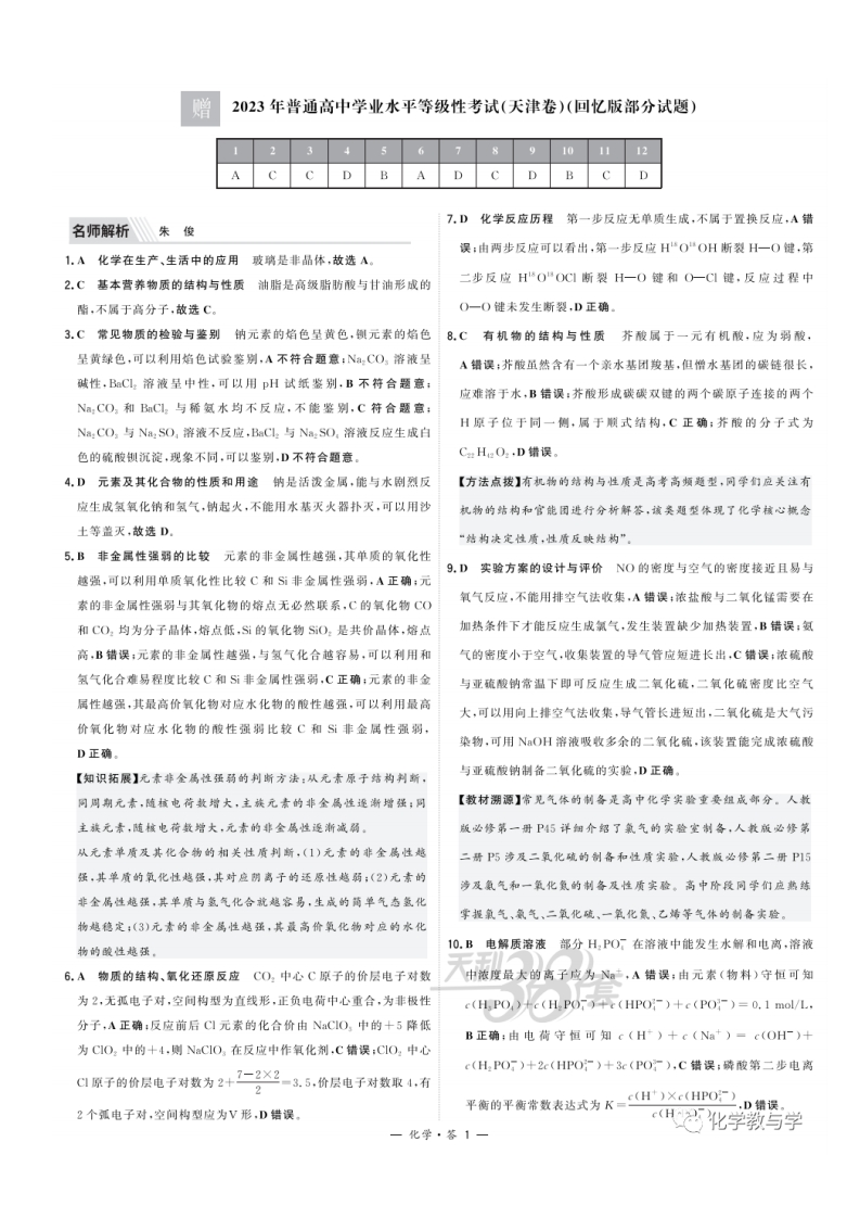 2023年高考化学试卷(天津)(回忆版)(解析卷)虎虎1个月前更新关注1.54MB5页245 第1页 / 共5页 第2页 / 共5页 第3页 / 共5页 该文档为免费文档,您可直接下载完整版进行阅读 2023年高考化学试卷(天津)(回忆版)(解析卷)此内容为免费资源,请登录后查看¥0 登录查看免费资源THE END化学 文本预览 智埔23年背通高小学业水平等拨性考试,N口),在反应中作还厚制A对魔介电子限引力:F< 查看更多 收起部分 喜欢就支持一下吧点赞5 分享QQ空间微博QQ好友海报分享复制链接收藏 相关推荐 2023年高考化学试卷(新课标)(空白卷)2018年高考化学试卷(海南)(解析卷)2022年高考化学试卷(北京)(空白卷)2010年高考化学试卷(天津)(空白卷)2022年高考化学试卷(湖南)(空白卷)2018年高考化学试卷(江苏)(空白卷)2016年高考化学试卷(新课标Ⅰ)(空白卷)2022年高考化学试卷(浙江)(1月)(解析卷)2015年高考化学试卷(海南)(空白卷)